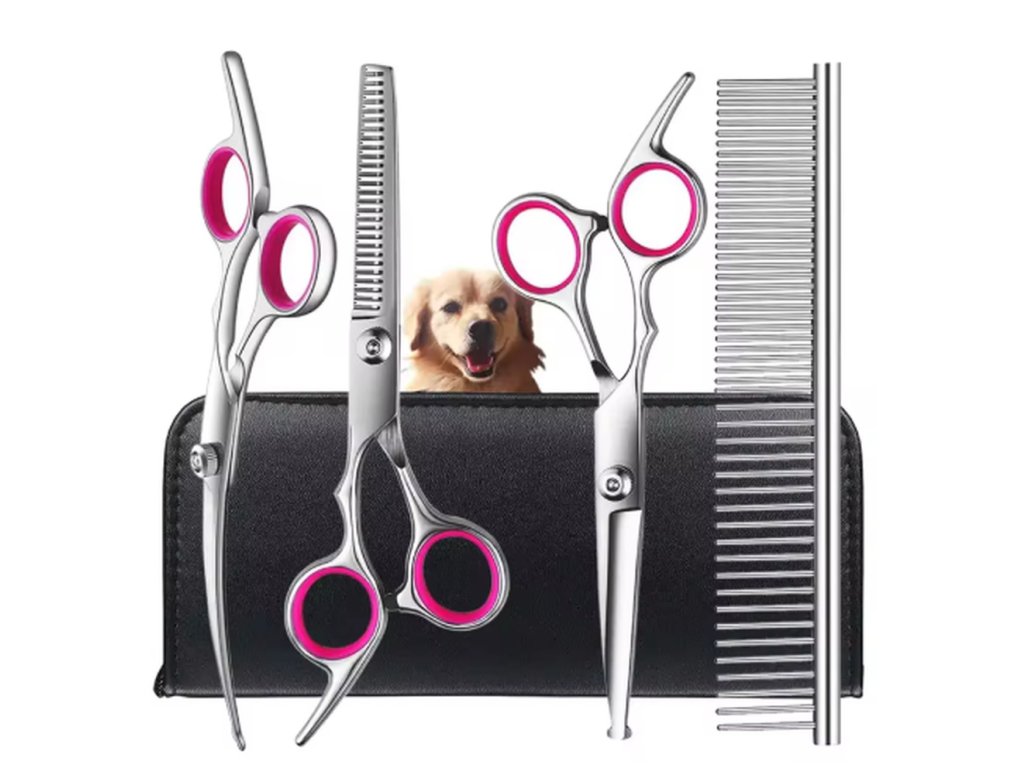 4-dílná sada pro úpravu srsti psů (3x nůžky + 1x hřeben)