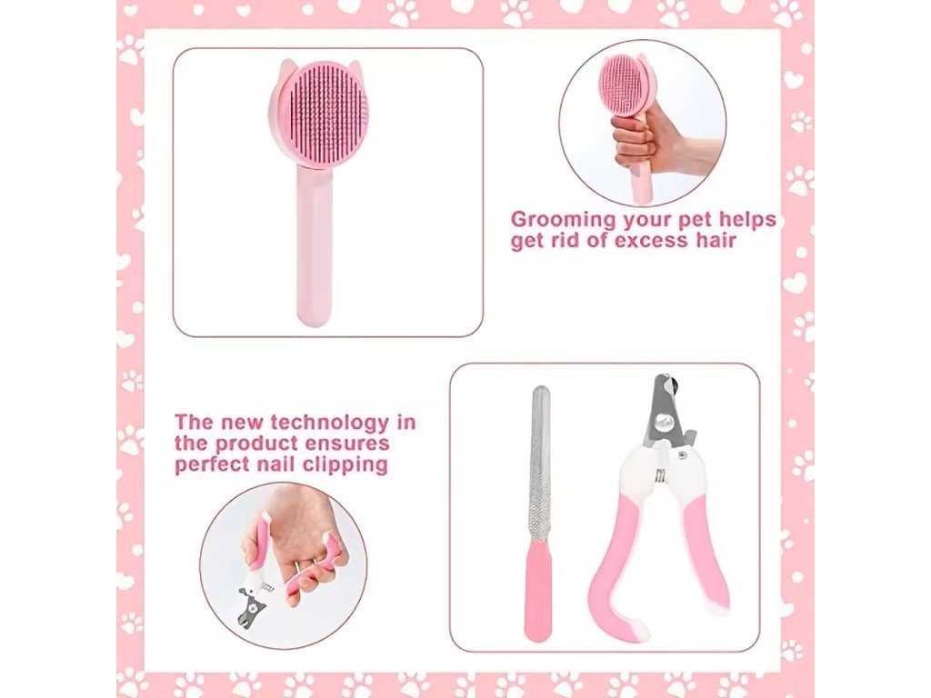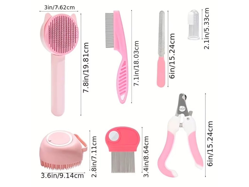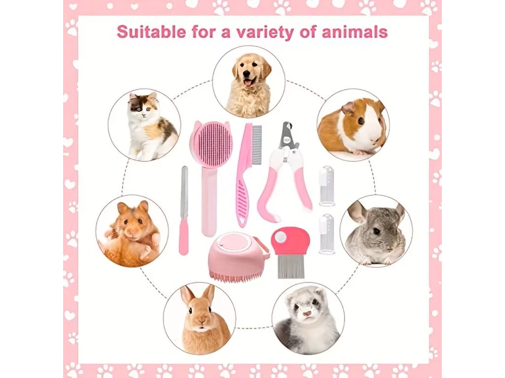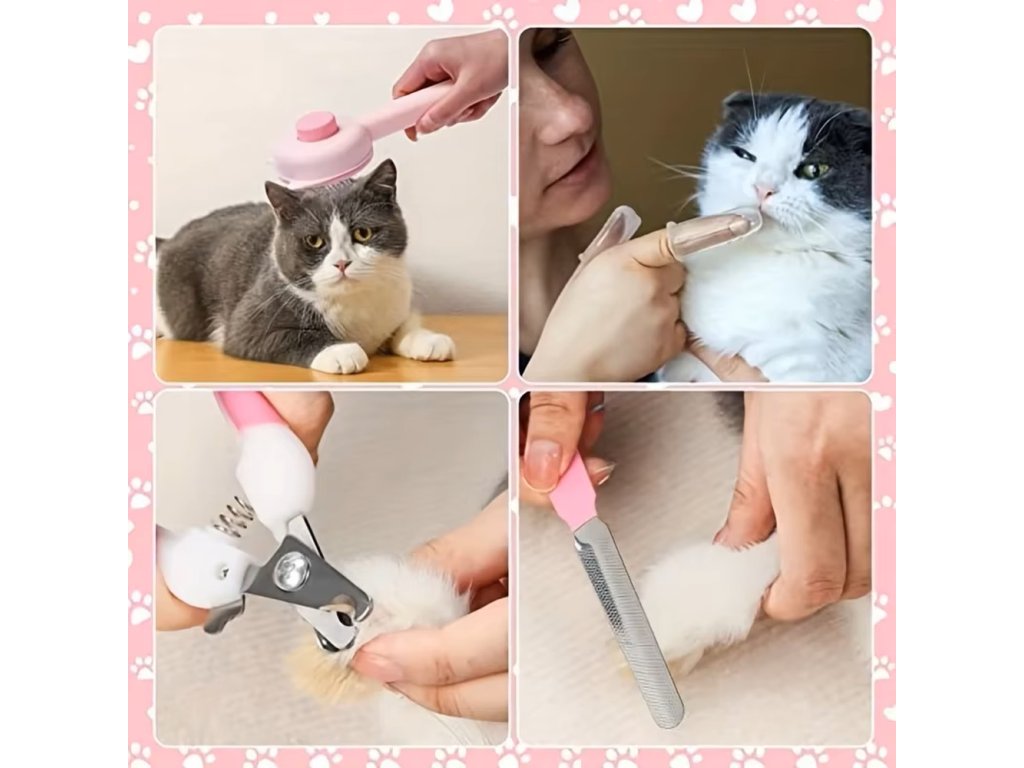 Univerzální sada pro kompletní péči o srst, drápky i všobecnou hygienu. Vhodná nejen pro kočky, ale i pro další malé mazlíčky, jako jsou psi, králíci nebo fretky. Obsahuje kartáče, hřebínky, kleštičky na drápky, pilník i masážní kartáč ke koupání. Ideální pro krátkou i dlouhou srst.