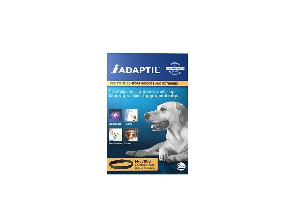 Unikátní obojek ADAPTIL® dodává psům pocit bezpečí a jistoty v situacích, kdy by se mohli cítit ohrožení, jako při cestování, zvýšeném hluku (ohňostroje, bouřky), při pobytu v neznámém prostředí (cvičiště, psí hotel) nebo při nepředvídaných událostech.