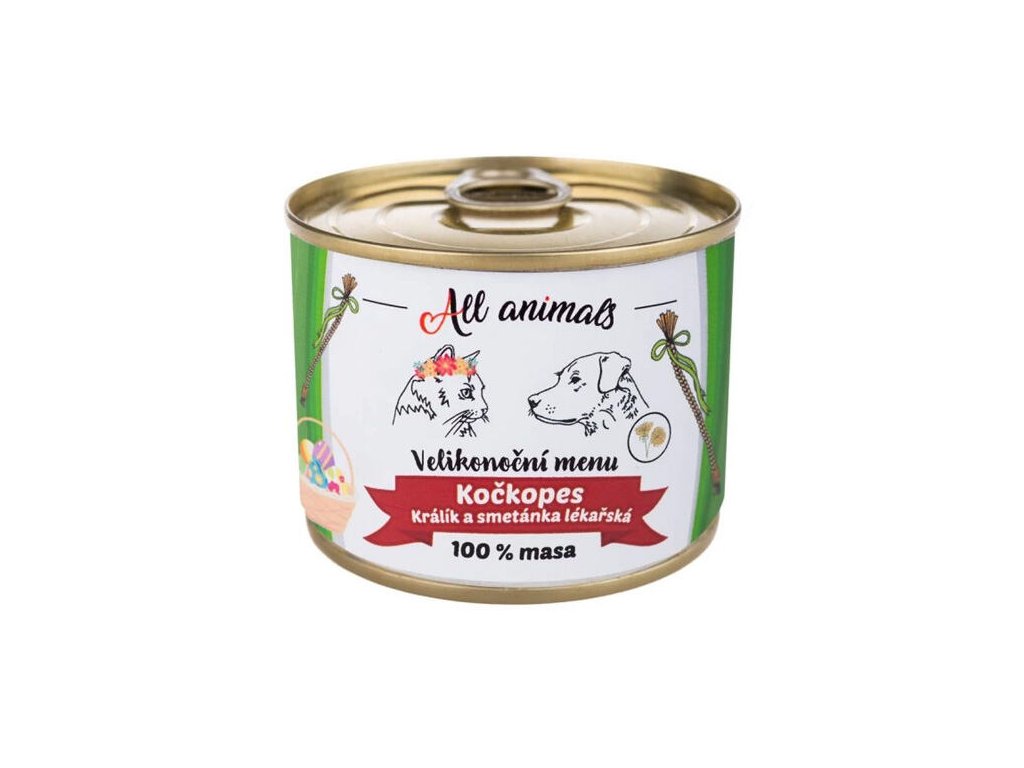 ALL ANIMALS Velikonoční menu KOČKOPES - limitovaná edice konzerva s králíkem a pampeliškou 200 g