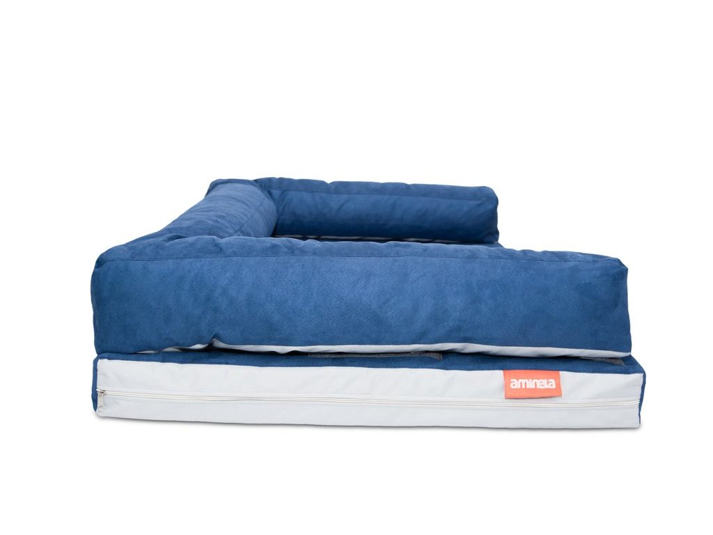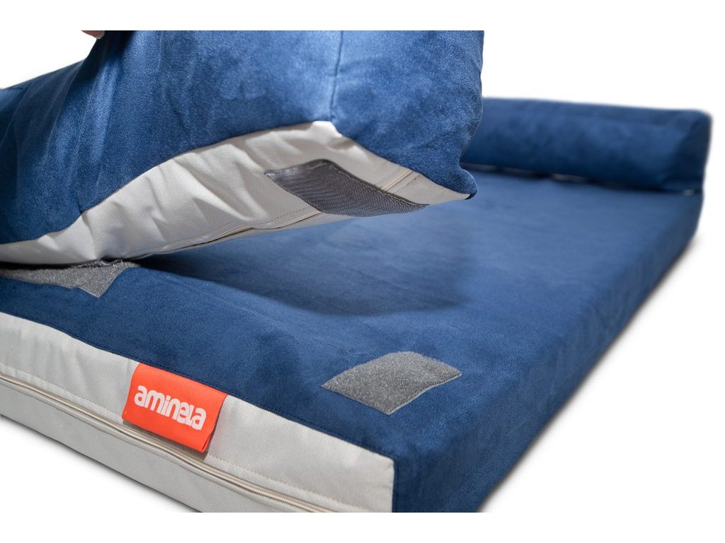 Matrace Aminela se skládá z dvou odolných materiálů, z voděnepropustného materiálu a měkkého, hebkého, avšak pevného a voděodpudivého materiálu, který nešustí a pro psa je velmi pohodlný. Ze stejně hebkého a pohodlného materiálu je vyroben okraj, který se na matraci přichytí pomocí suchých zipů. Kdykoliv se dá okraj odlepit a zase nalepit.
