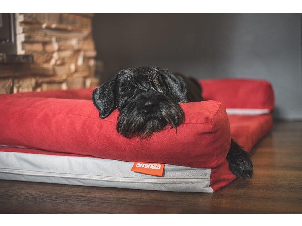Po dlouhé procházce, výletu či sportovních aktivitách svému psovi každý majitel chce dopřát ten nejlepší odpočinek. Takový pelíšek by měl být pohodlný pro psa, dostatečně přizpůsobený jeho váze tak, aby se preventivně předcházelo otlačeninám kloubů a proleženinám a zároveň designově pěkný a doplňující interiér. Aminela pelíšek s okrajem toto vše maximálně splňuje! Tento náš pelíšek je dalším krokem k pohodlí našich psích mazlíčků. Skládá se z elegantní matrace s kvalitní výplní a praktického a pohodlného okraje pro větší pohodlí s výplní drtě paměťové pěny. Pelíšek je možné využívat jako komplet matrace s okrajem, nebo okraj sejmout ze suchých zipů a využít pouze lepší jednoduchou matraci v případě např. cestování se psem. Vymyšlením a zpracováním tohoto systému pelíšku jsme tak získali pro naše mazlíčky pelíšek snů, který je pohodlný, bezpečný a díky jednoduchému avšak pěknému designu i vhodný do jakékoliv domácnosti. Stejně jako ostatní produkty Aminela jsou i pelíšky výhradně české výroby!