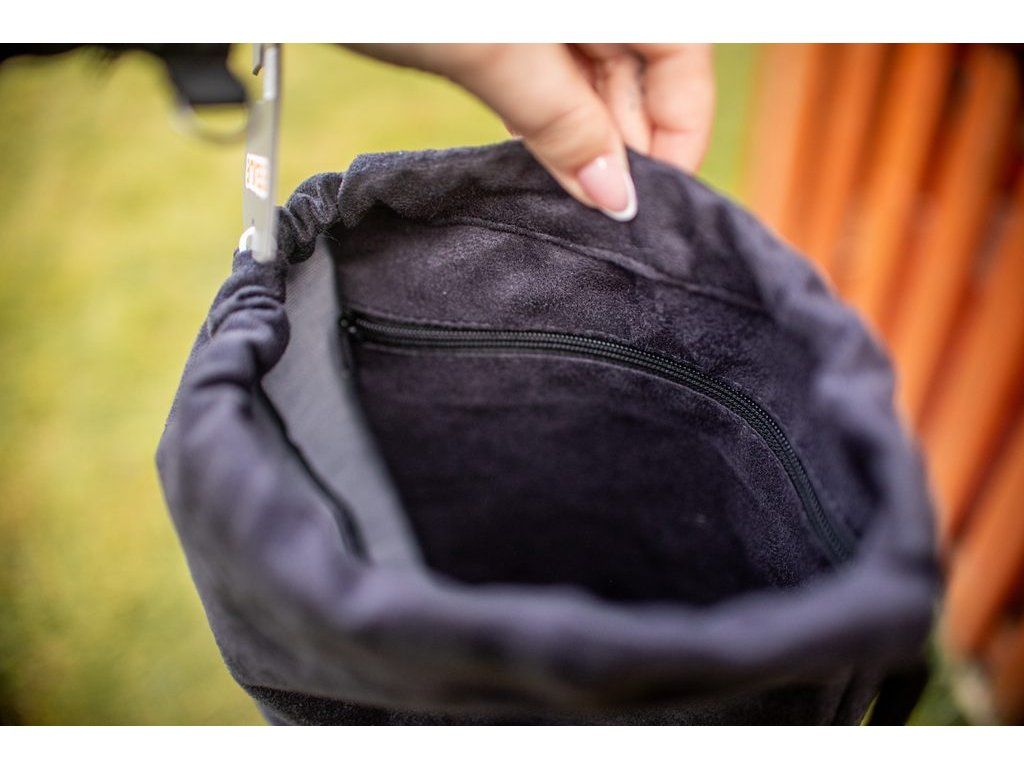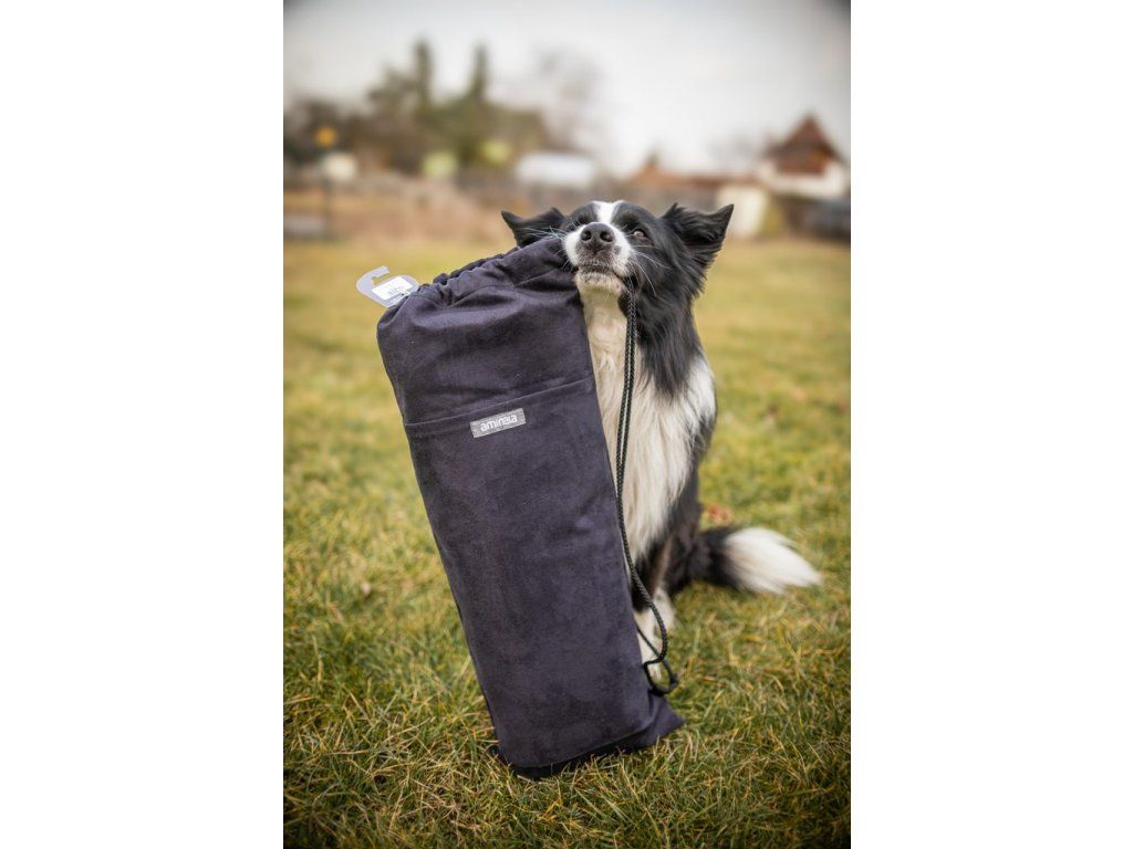 Součástí je praktický obal ze stejného materiálu, který můžete zavěsit přes rameno, nebo např. na batoh při cestování. Obal je opatřen dvěmi kapsami. Jednou vnější vhodnou na psí potřeby jako jsou pamlsky, cestovní místa, vodítko a další potřeb a druhou kapsou vnitřní na zip vhodnou na klíče, mobil a cennosti. Podložku lze snadno srolovat a vložit do obalu. Takto je podložka chráněna před zašpiněním a zároveň je skladná.