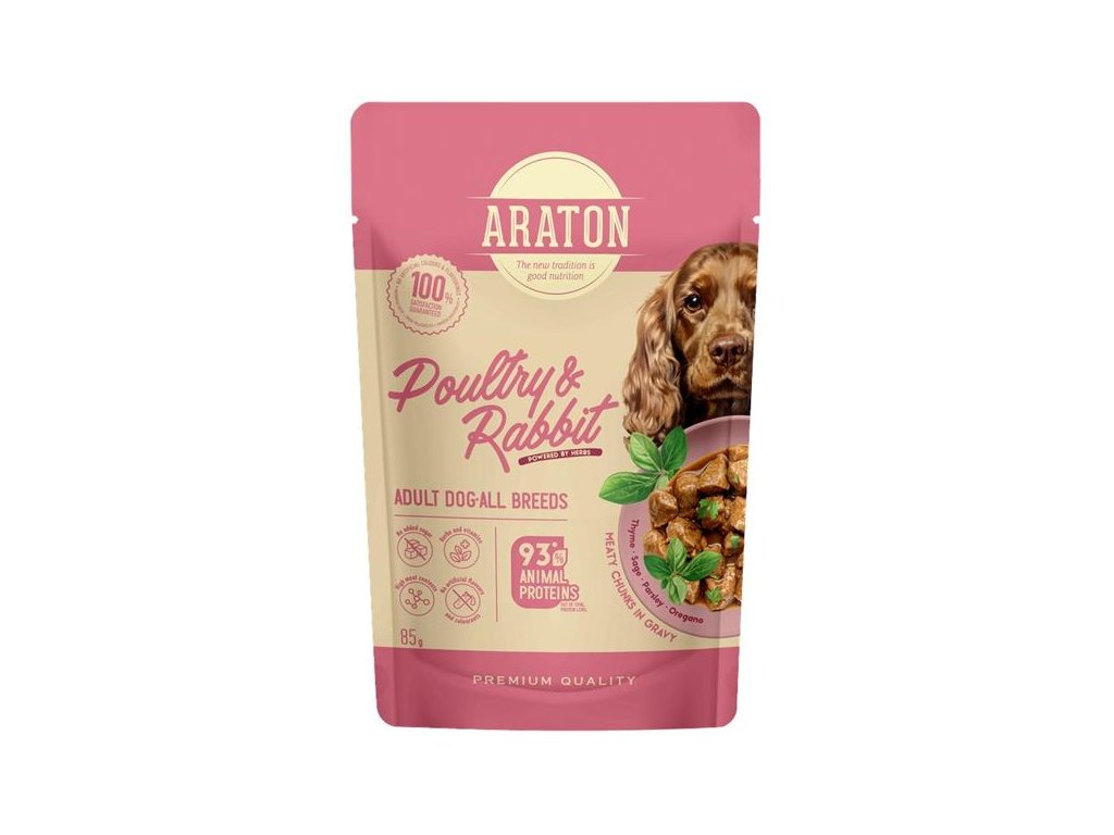 Kompletní vlhké krmivo Araton představuje spolehlivé řešení, pokud vám záleží nejen na chuti, ale i na každodenní pohodě vašeho psa. Poskytuje všechny nezbytné živiny pro udržení zdravého trávení, silné imunity a dobré kondice kůže i srsti.