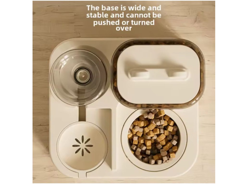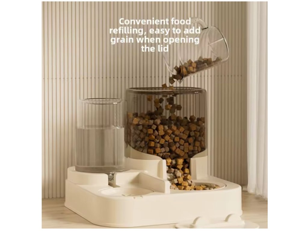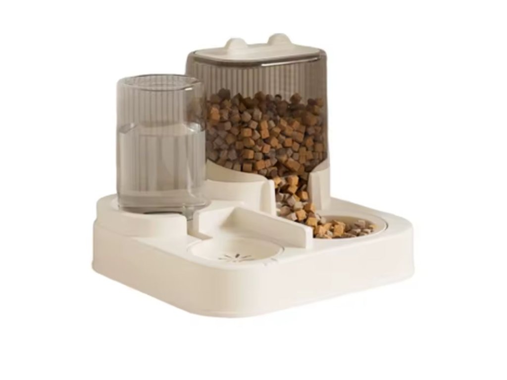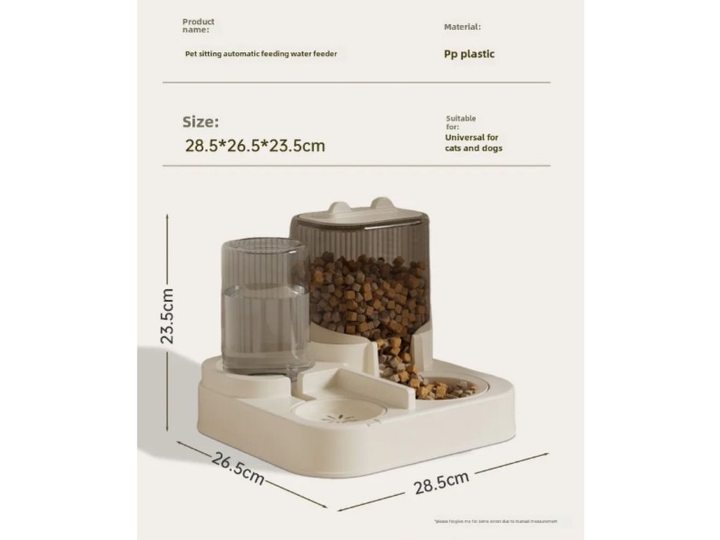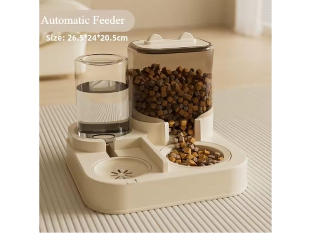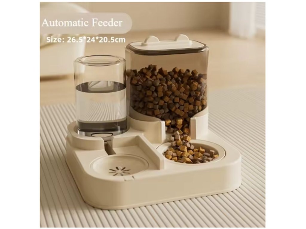 Automatický dávkovač vody a granulí pro kočky. Dávkovač dokáže zásobovat kočku jídlem na 3–5 dní. Je snadno odnímatelné, vyrobené z odolných materiálů a snadno se čistí. Díky gravitačnímu mechanismu se krmivo a voda doplňují postupně, jak je kočka spotřebovává. Objem nádoby na granule jsou 2l, na vodu 1,5l.