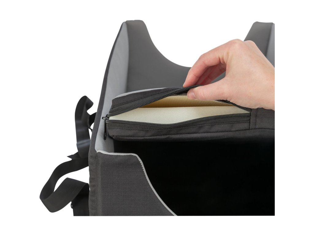 s drátěným krytem obsahuje řemínky k přichycení krytu ke koši součástí podpěra a dva držáky k připevnění na řidítka uvnitř polštář s plyšovým potahem (lze prát v ruce) držák...