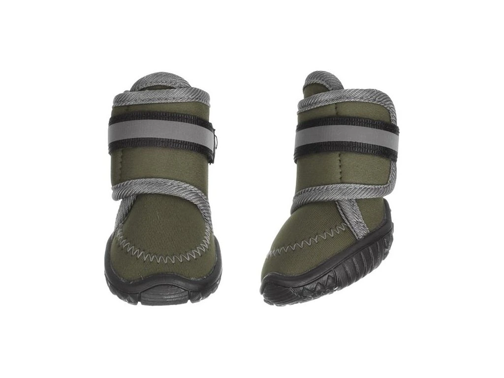 Neoprenové botičky pro psy Flamingo Kajan spolehlivě chrání psí tlapky při venkovních aktivitách i v těžším terénu. Díky pevné podrážce poskytují ochranu před horkými povrchy, ledem či ostrými kameny. Jsou voděodolné, snadno se upevňují pomocí nastavitelného suchého zipu a mají pevnou protiskluzovou podrážku, která pomáhá zamezit uklouznutí na mokrých či kluzkých površích. Reflexní prvky zvyšují viditelnost za šera či ve tmě. Boty se snadno čistí ručním praním.