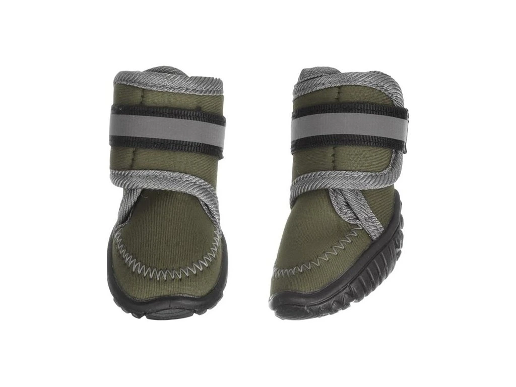 Neoprenové botičky pro psy Flamingo Kajan spolehlivě chrání psí tlapky při venkovních aktivitách i v těžším terénu. Díky pevné podrážce poskytují ochranu před horkými povrchy, ledem či ostrými kameny. Jsou voděodolné, snadno se upevňují pomocí nastavitelného suchého zipu a mají pevnou protiskluzovou podrážku, která pomáhá zamezit uklouznutí na mokrých či kluzkých površích. Reflexní prvky zvyšují viditelnost za šera či ve tmě. Boty se snadno čistí ručním praním.