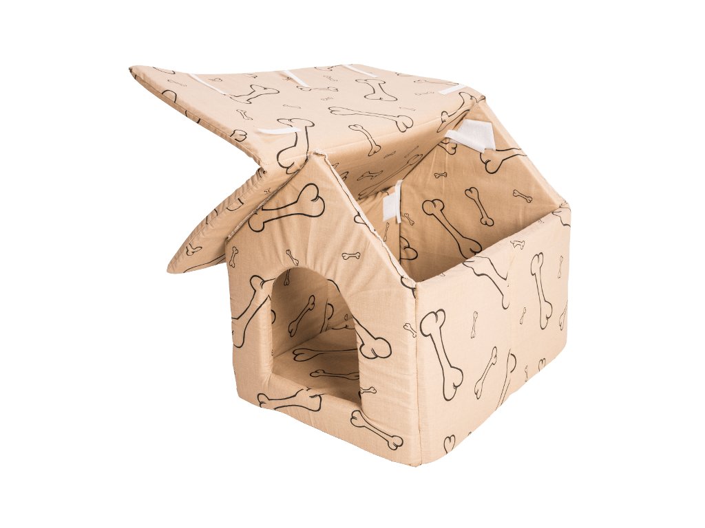 Bavlněný pelíšek pro psa ve tvaru boudy od značky Samohýl Exclusive.
