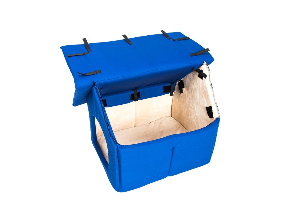 Bavlněný pelíšek ve tvaru boudy je vhodný pro kočky či menší psy, kteří na spánek potřebují klid nebo se rádi schovávají. Oceníte ho i při cestování – boudu lze snadno rozložit a složit pomocí suchých zipů. Prošití v lomech zajišťuje stálost tvaru. Bavlněný materiál se dobře udržuje (nezachytává chlupy). Součástí pelíšku je oboustranná, snadno vyjímatelná podložka, kterou lze použít i samostatně.