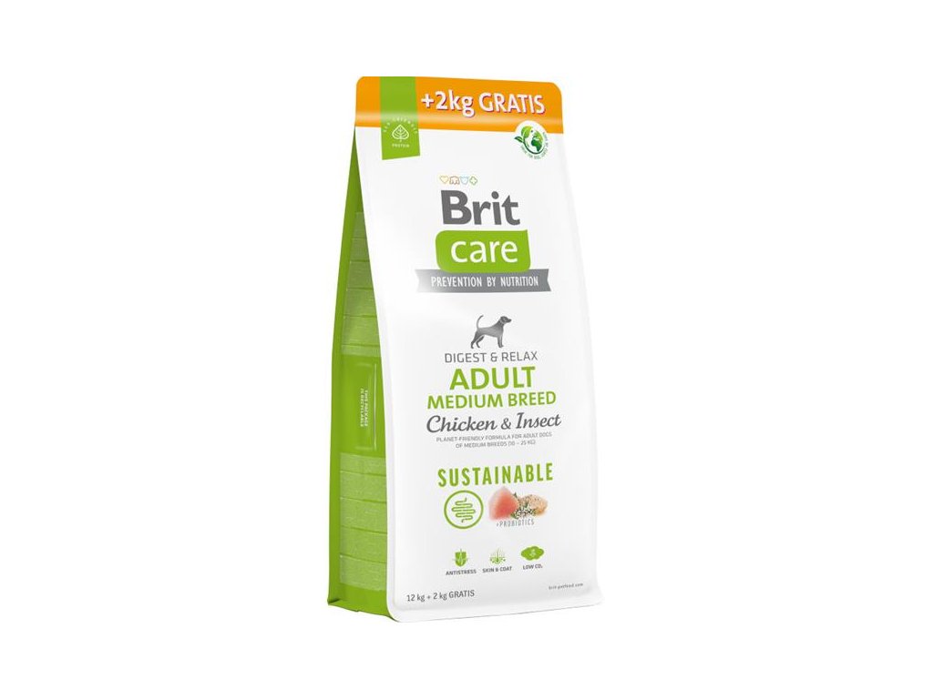 Brit Care Dog Sustainable Adult Medium Breed Chicken+Insect 12 + 2 kg