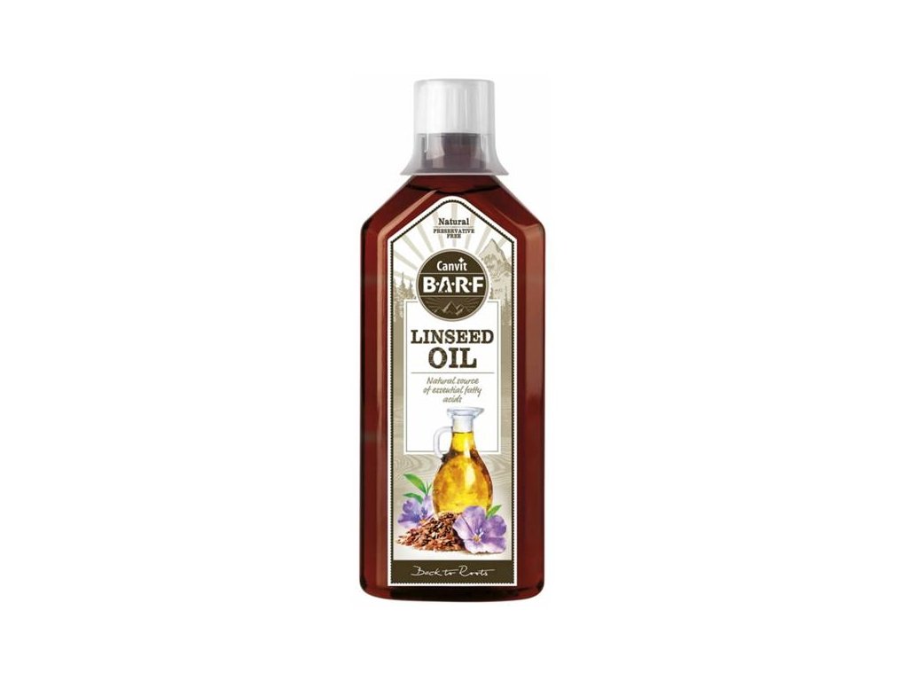 Canvit B.A.R.F. Linseed Oil je zastudena lisovaný olej ze lněných semen. Vhodný doplněk zejména pro psy krmené BARF stravou. Lněný olej je přírodním zdrojem esenciálních nenasycených mastných kyselin, zejména kyseliny alfa-linolenové (ALA), která je nejdůležitější mastnou kyselinou ve lněném oleji. Je důležitá pro správnou funkci buněčných stěn, nervů, imunity, srdce a cév. Dále má blahodárné účinky na stav kůže a srsti psů. Působí proti línání, matné srsti a zacuchávání. Srst je díky ní lesklá a kůže vláčná bez svědivých příznaků.