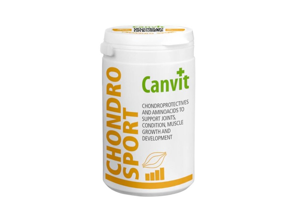 Chutné tablety Canvit Chondro Sport podporují zdraví kloubů a napomáhají růstu svalů a rozvoji tělesné kondice u aktivních a sportujících psů. Udržet aktivního, sportujícího psa ve skvělé formě vyžaduje víc než jen pravidelný výcvik a fyzickou aktivitu. Unikátní kombinace kloubní výživy a aminokyselin zajistí tu nejlepší podporu pro zdraví kloubů, sílu svalů a excelentní tělesnou kondici vašeho psa.