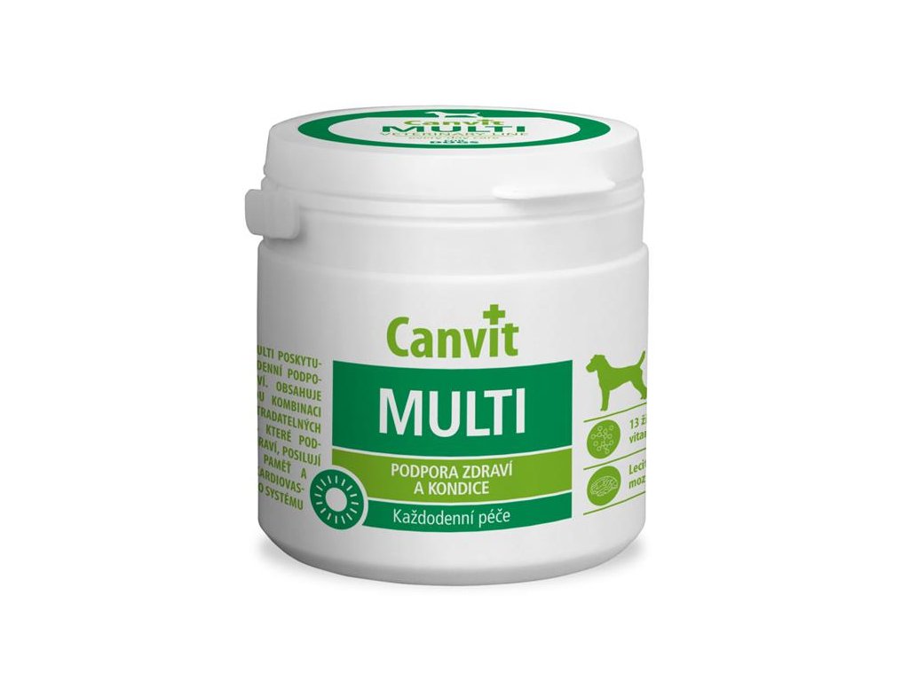 Canvit Multi je komplex 13 vitamínů a lecitinu pro aktivní podporu zdraví, metabolismu, imunity a paměti u psů. Vitamíny se účastní všech metabolických procesů probíhajících v těle a jsou důležité pro trávení, vstřebávání a přeměnu živin v tělesné tkáně. Dále se účastní obraných a detoxikačních procesů a jsou důležité pro správný růst, vývoj, reprodukci, obranyschopnost a udržení aktivity, kondice a celkového zdraví. Zvýšená potřeba vitamínů nastává v období růstu, nemoci, rekonvalescence, březosti, kojení a ve stáří.