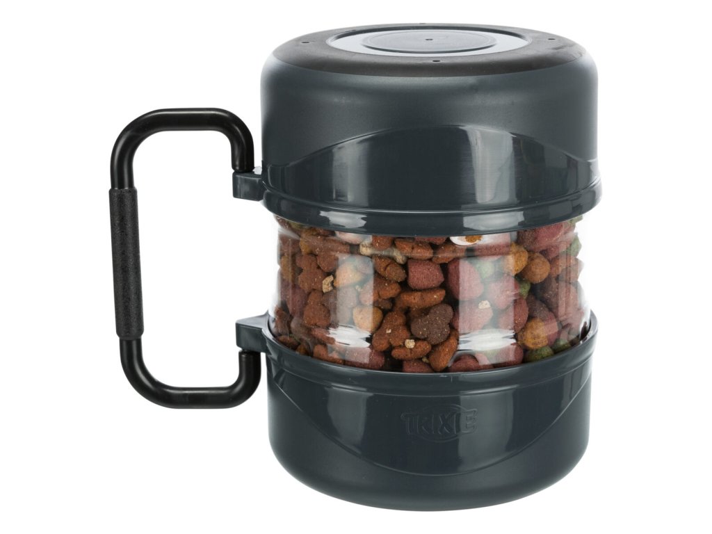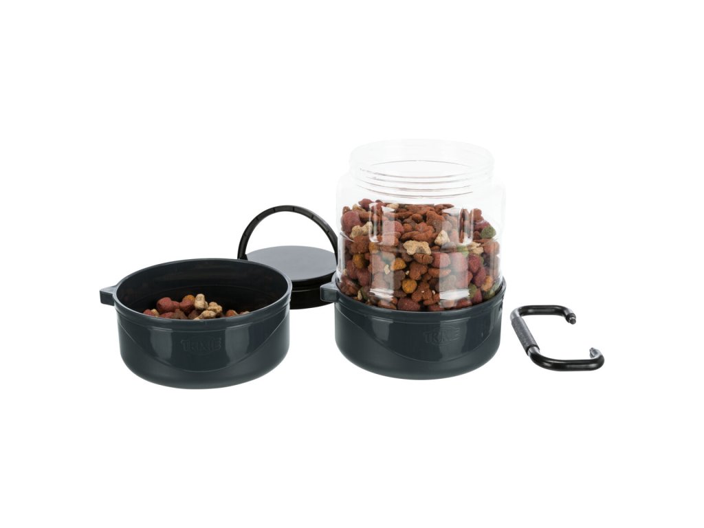 ✓ 2v1 – zásobník na krmivo + dvě misky