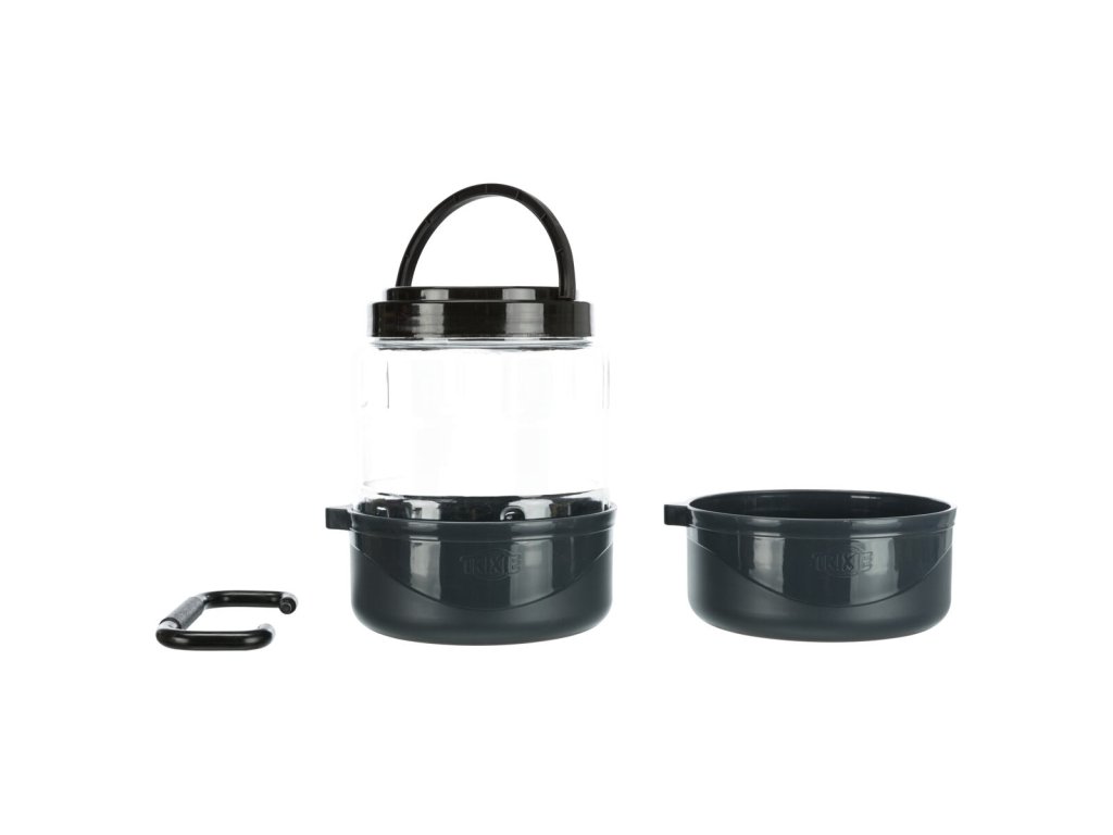 Cestovní plastový zásobník na krmivo 2 l + 2 misky á 0,75 l je praktická a kompaktní sada pro krmení a napájení psa na cestách, která vám usnadní život při výletech, dovolené nebo víkendovém pobytu mimo domov 🐶🚗⛺. Tento šikovný set obsahuje zásobník na suché krmivo o objemu 2 litry a dvě odnímatelné misky, každá o objemu 0,75 litru – ideální pro vodu i granule.