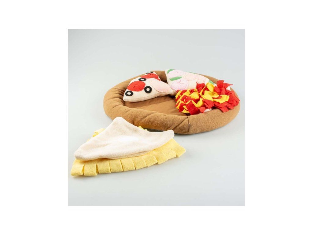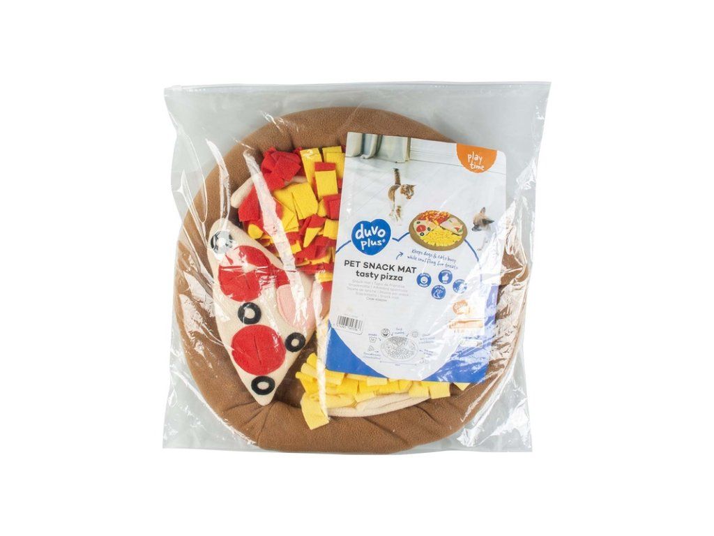 Čmuchací dečka v podobě pizzy je skvělé místo pro schování suchého krmiva či pamlsků. Interaktivní hračka stimuluje lovecký instinkt psa nebo kočky, zabaví je při hledání pamlsků a zabraňuje hltání potravy, čímž pomáhá předcházet problémům s váhou. Spodní strana má protiskluzovou úpravu.