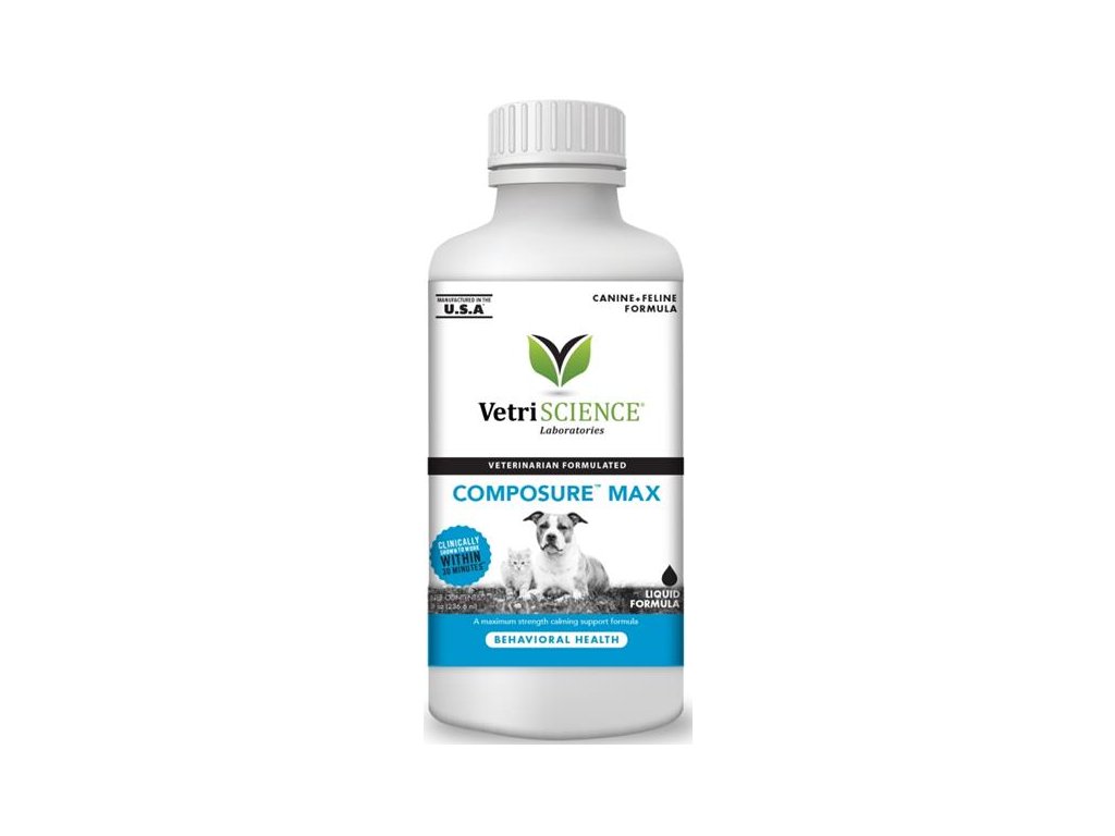 Composure™ Max Liquid je určen pro kočky a psy, které vykazují hyperaktivitu, úzkost nebo reagují na stres vyvolaný životním prostředím.