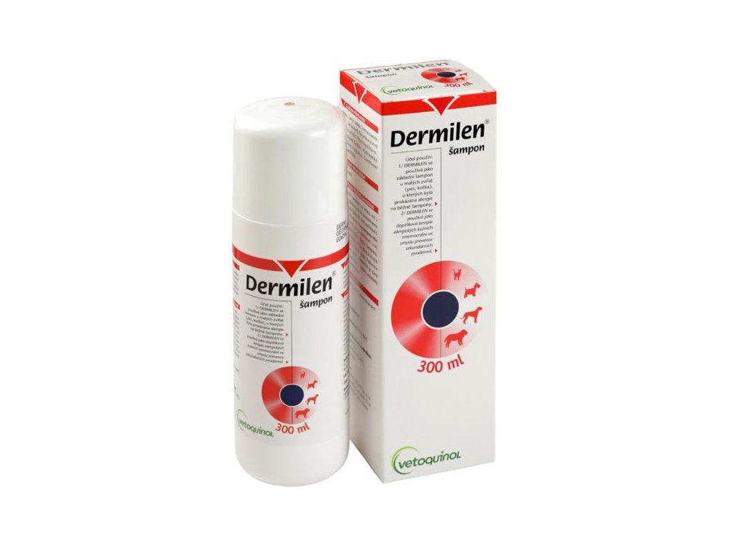 Dermilen se používá jako základní šampon u malých zvířat (pes, kočka), u kterých byla prokázána alergie na běžné šampony. Používá se jako doplněk léčby u alergických kožních onemocnění. Dermilen má silný čistící efekt, díky kterému dosáhneme u zvířete důkladného umytí kůže a srsti. Současně DERMILEN zabraňuje nežádoucímu vysoušení kůže, a naopak udržuje kůži a srst hebkou, pružnou a lesklou. Veterinární přípravek určený k vnějšímu použití.