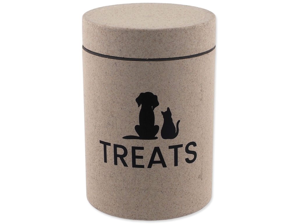 Stylová dóza na krmivo nebo pamlsky s přírodním vzhledem. Udrží obsah čerstvý a chráněný před vlhkostí či nečistotami a zároveň zapadne do každého interiéru. Díky pevnému víku je ideální pro každodenní používání a ekologický, odolný materiál zaručuje dlouhou životnost.