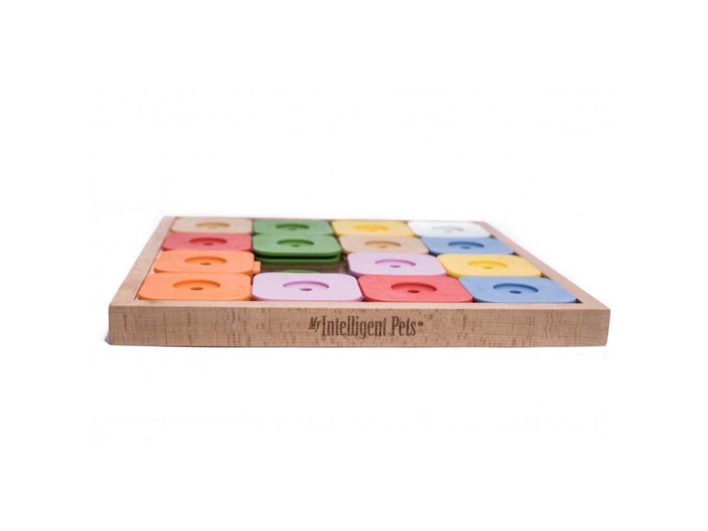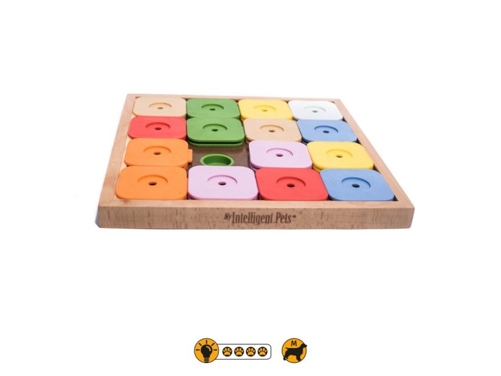 Naše řada interaktivních her "Dog' SUDOKU®" představuje inovativní přístup k myšlence produktů pro obohacení chovu domácích mazlíčků vyvinutých a patentovaných společností My Intelligent Pets®. Hra se dodává v různých velikostech vhodných pro vašeho psa (malá, střední a velká) a ve třech úrovních obtížnosti (základní - 4 pole, pokročilá - 6 polí, expert - 9 polí a džin - 16 polí).