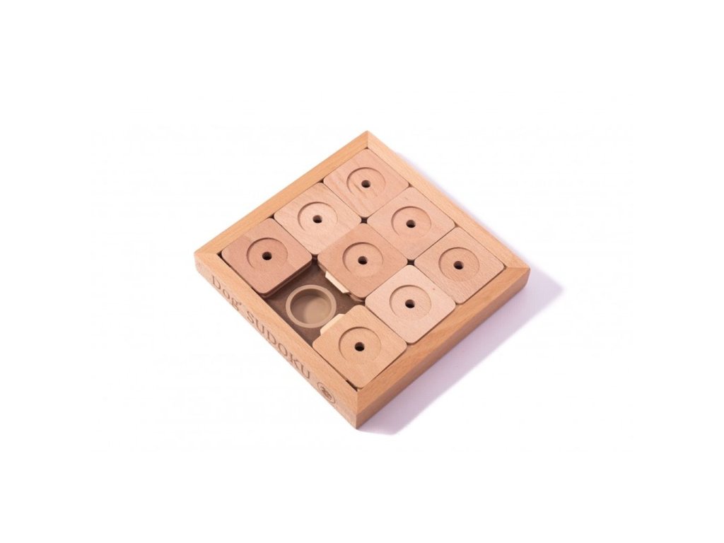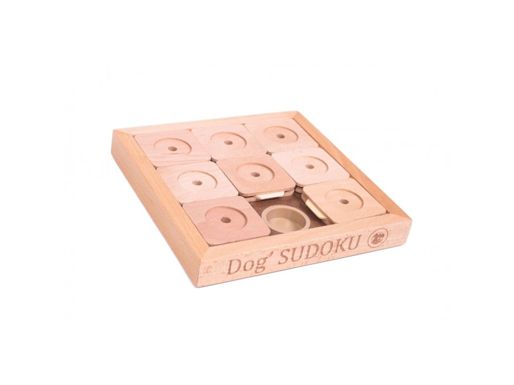 Dog´ Sudoku je vyrobeno z certifikovaného dřeva opatřeného nátěrem na vodní bázi, který není škodlivý pro zvířata ani lidi. Udržujte hlavolam co nejvíce v suchu, abyste předešli naboptnání jednotlivých dřevěných částí.
