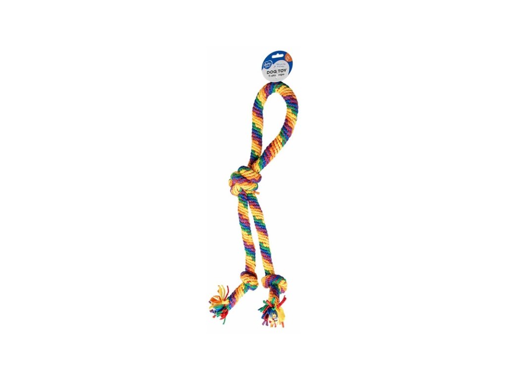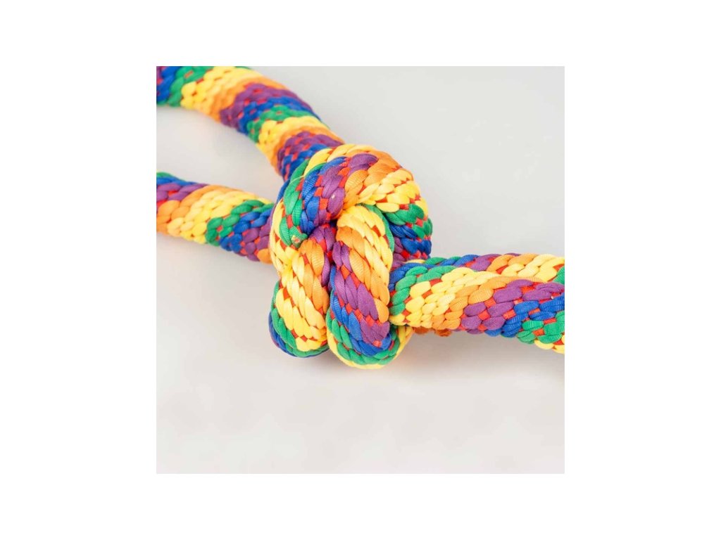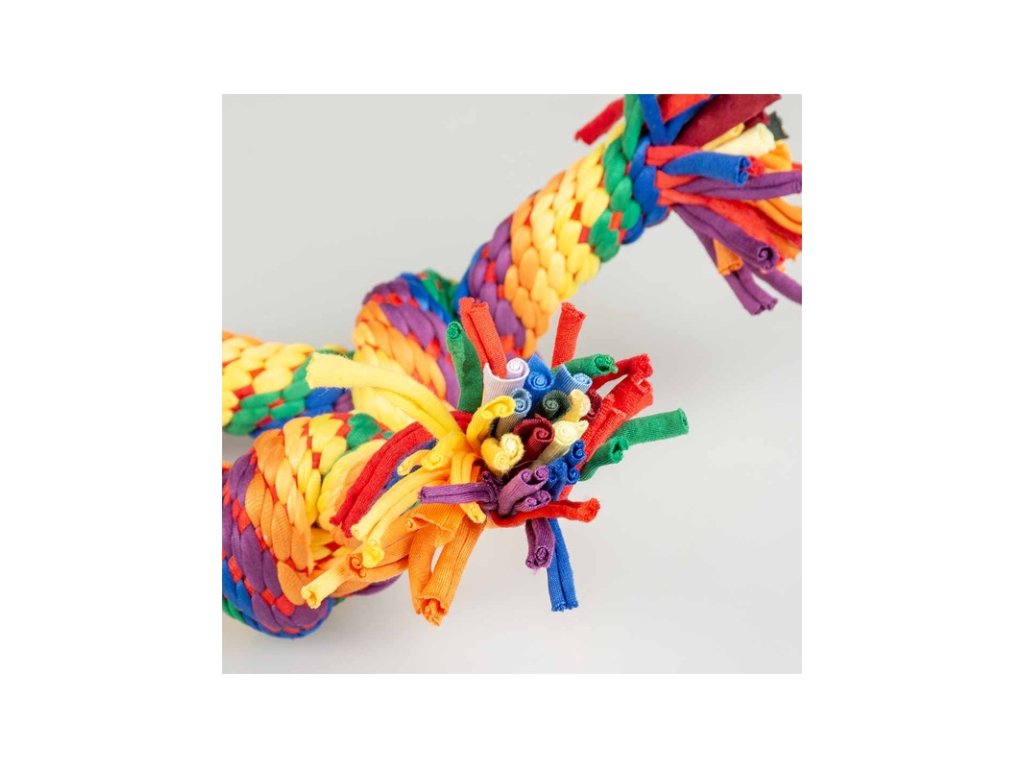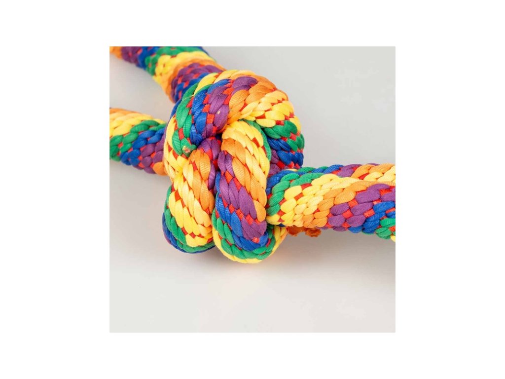 Odolné a barevné přetahovadlo pro psy je spletené z pružných pruhů látky připomínající legínovinu. Na jedné straně je zakončené okem pro snadné uchopení. Díky elastickému materiálu a uzlům je ideální pro přetahování i aportování. Kvalitní zpracování zajišťuje dlouhou životnost hračky.