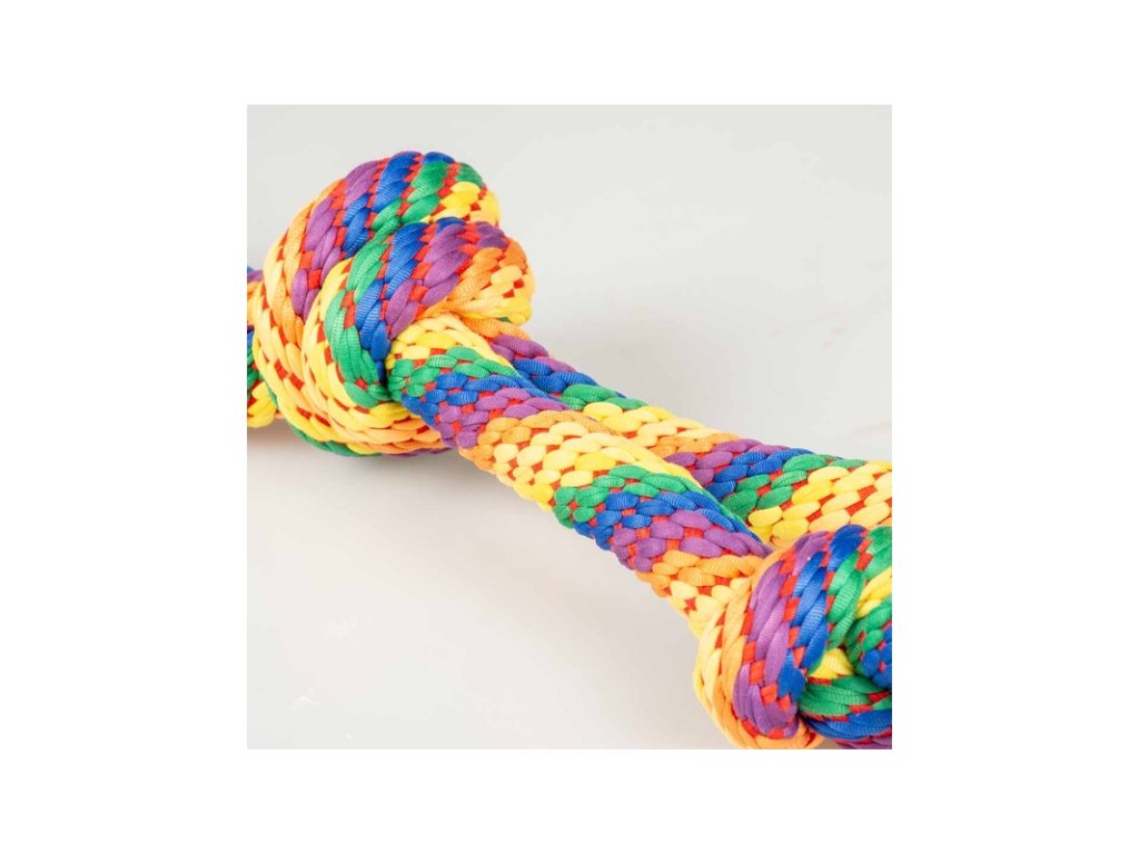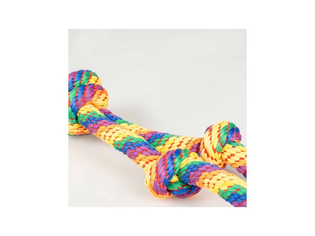 Odolné a barevné přetahovadlo pro psy je spletené z pružných pruhů látky připomínající legínovinu. Na jedné straně je zakončené okem pro snadné uchopení. Díky elastickému materiálu a uzlům je ideální pro přetahování i aportování. Kvalitní zpracování zajišťuje dlouhou životnost hračky.