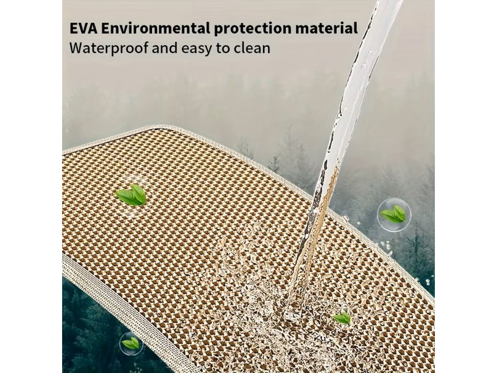 Podložka je vyrobena z kvalitního materiálu EVA a plastu, který je odolný, pružný a příjemný na dotek pro kočičí tlapky. Materiál je zároveň lehký, voděodolný a snadno omyvatelný, takže podložku můžete jednoduše vyčistit vlhkým hadříkem nebo opláchnout vodou.