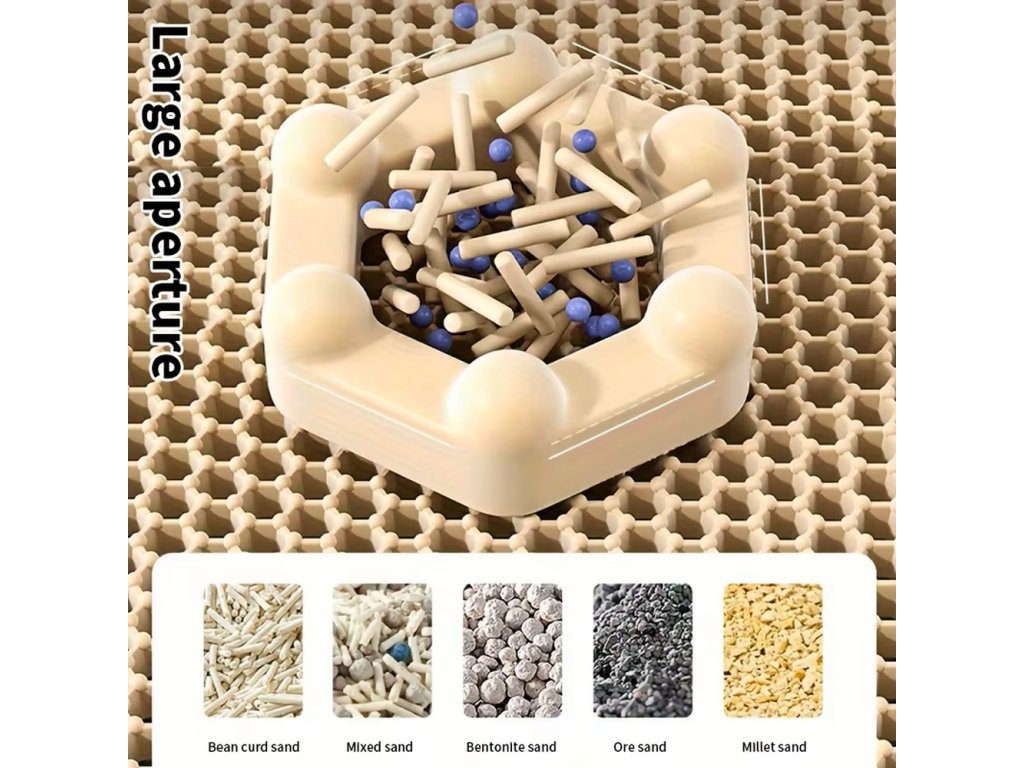 Podložka je navržena tak, aby výrazně usnadnila údržbu prostoru kolem kočičí toalety. Horní vrstva je perforovaná s jemnými otvory, které zachytí stelivo z kočičích tlapek. Stelivo následně propadne do spodní vrstvy, kde zůstane bezpečně zachycené. Stačí podložku otevřít nebo naklonit a stelivo jednoduše vysypat zpět do toalety 🧹.