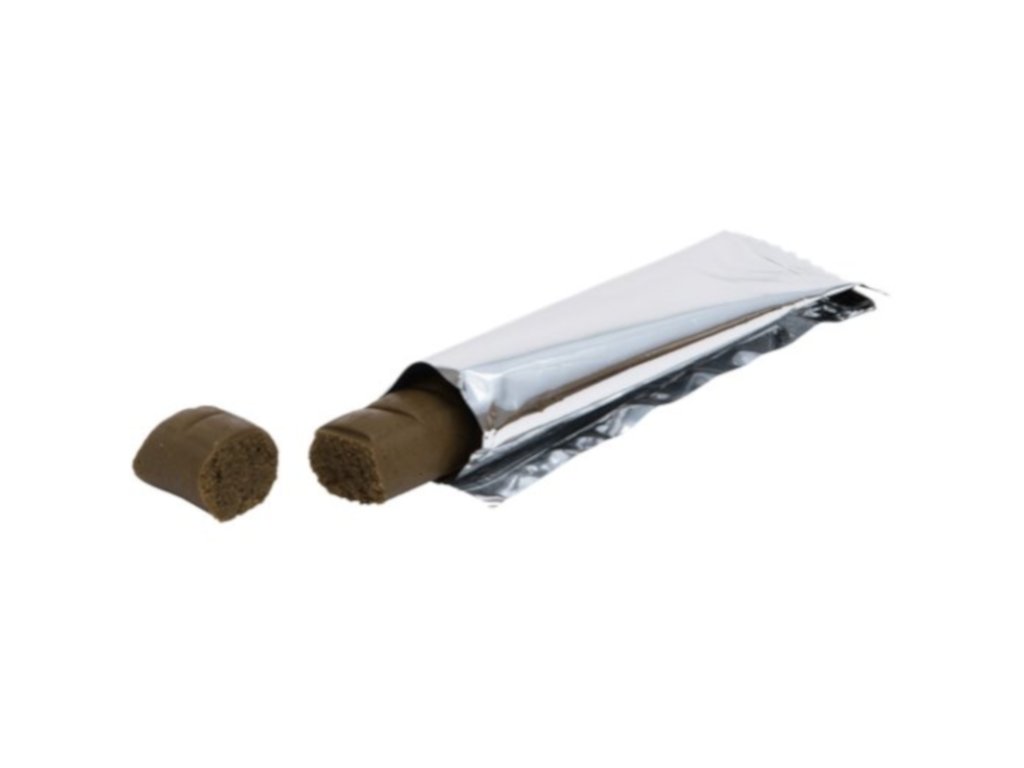 Otevřete balení a nakrájejte tyčinku nožem. Skryjte tabletku v kousku tyčinky a vytvořte kuličku, aby lék nebyl vidět. Podejte vytvořenou kuličku s lékem zvířeti. U kapek nebo prášku nejprve udělejte v kuličce důlek, přidejte lék a poté zabalte stejným způsobem jako u tabletky.