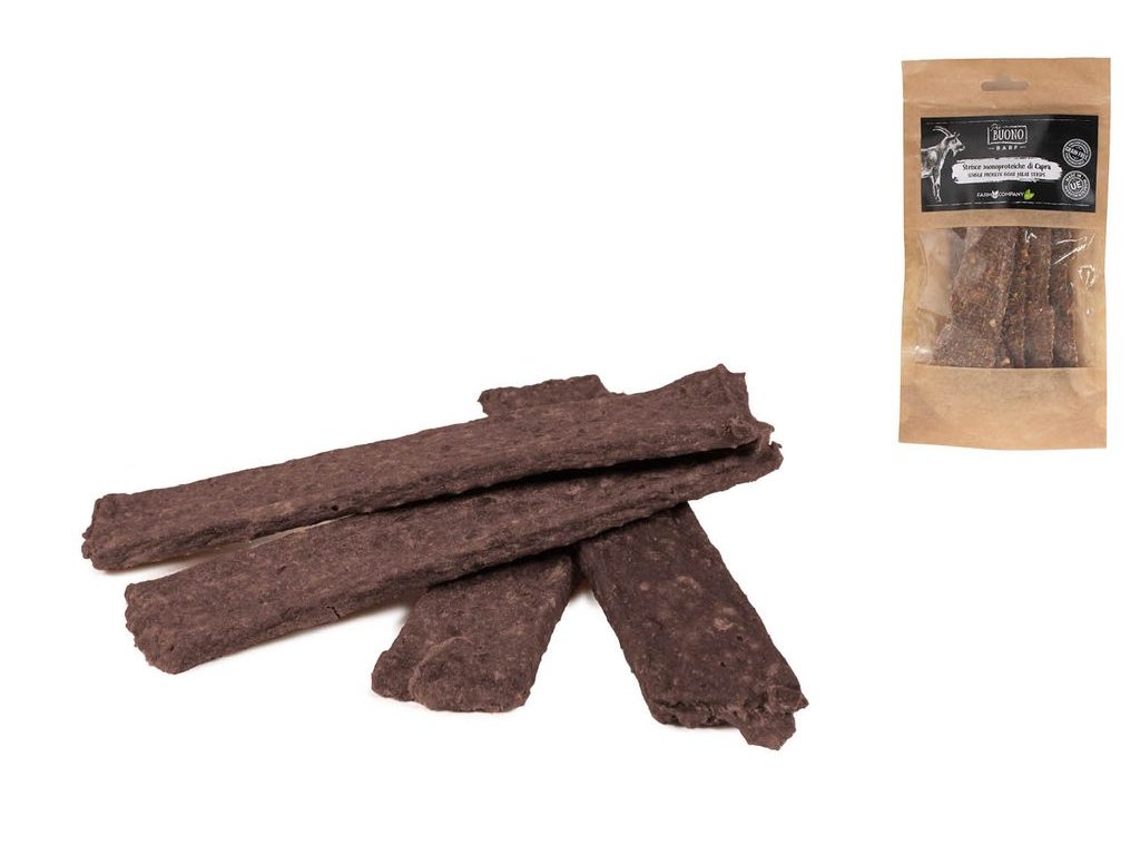 Kozí pamlsky ve tvaru plátků vynikají obsahem velmi kvalitních surovin. Obsahují až 100 % čisté svaloviny a prochází velmi pomalým a pečlivým procesem sušení. To zajišťuje maximální zachování všech vitamínů a živin. Obsahují pouze jeden druh živočišné bílkoviny, skvěle se hodí pro psy s alergiemi a intolerancemi. Jsou zcela bez obilovin, lepku, umělých konzervantů a barviv.