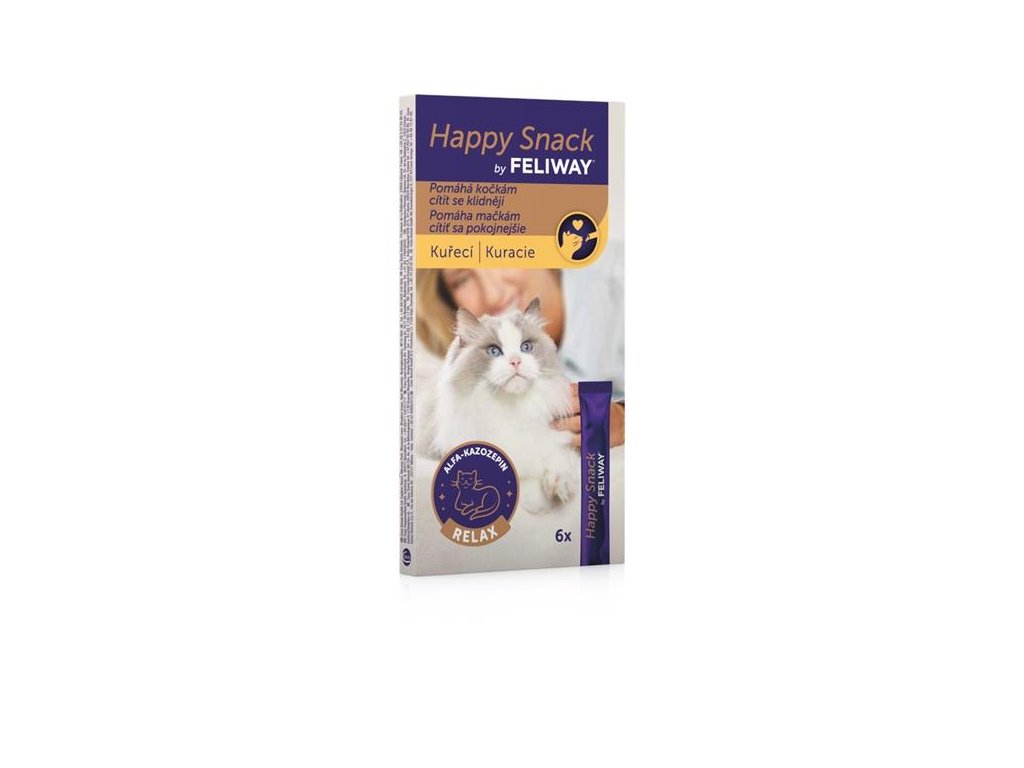 Feliway Happy Snack Kuřecí 6x15 g je lahodná krémová pochoutka pro kočky, která potěší i vybíravé kočičí gurmány a zároveň podpoří jejich vnitřní pohodu díky obsahu alfa-kazozepinu 🐱💛