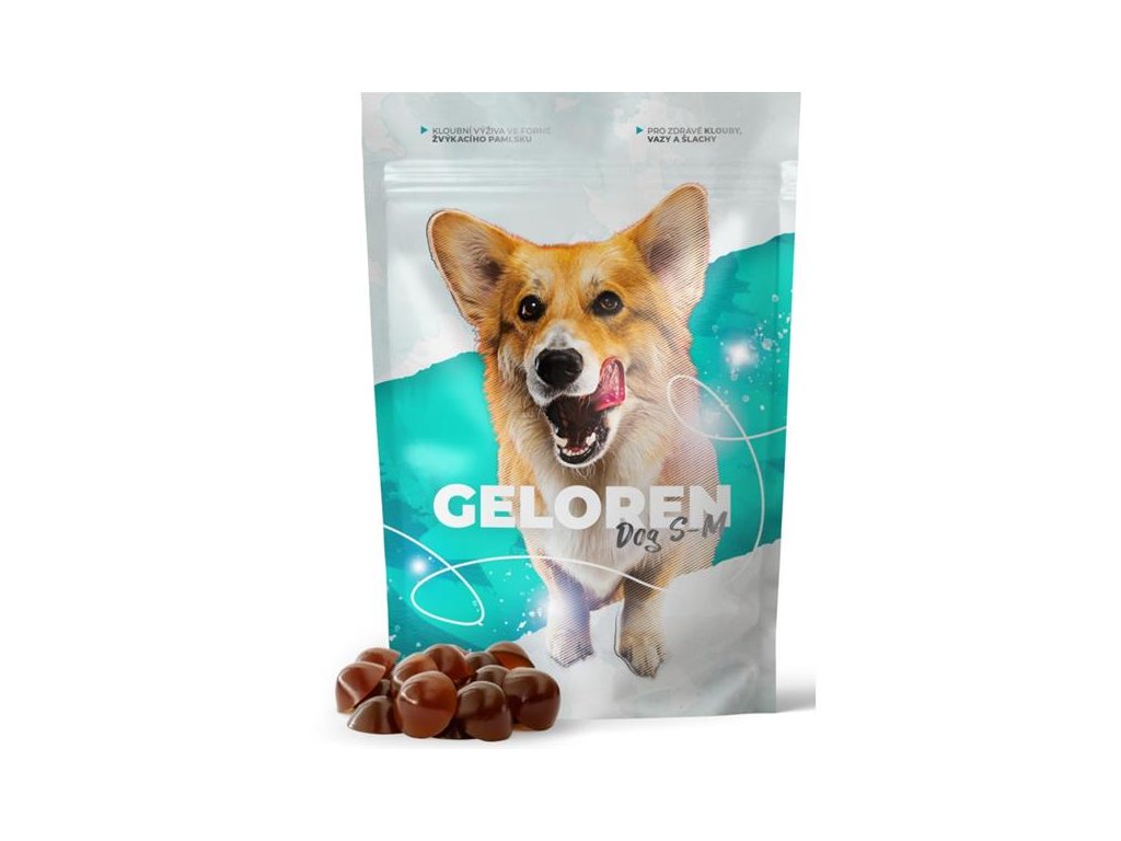 Geloren S – M ve formě ochucených žvýkacích kostek je určený pro malá a střední plemena psů. Napomáhá k regeneraci kloubů u řady pohybových problémů. Slouží také jako prevence pro prodloužení aktivního života psa.