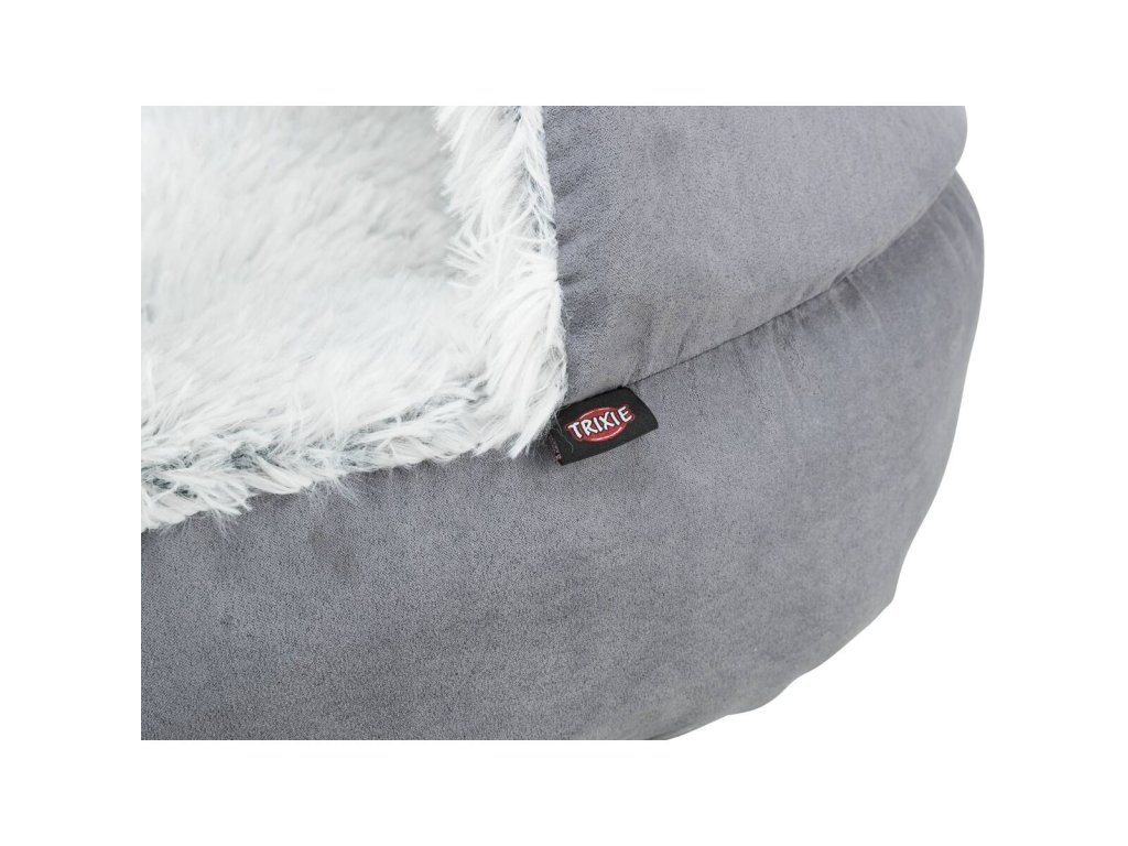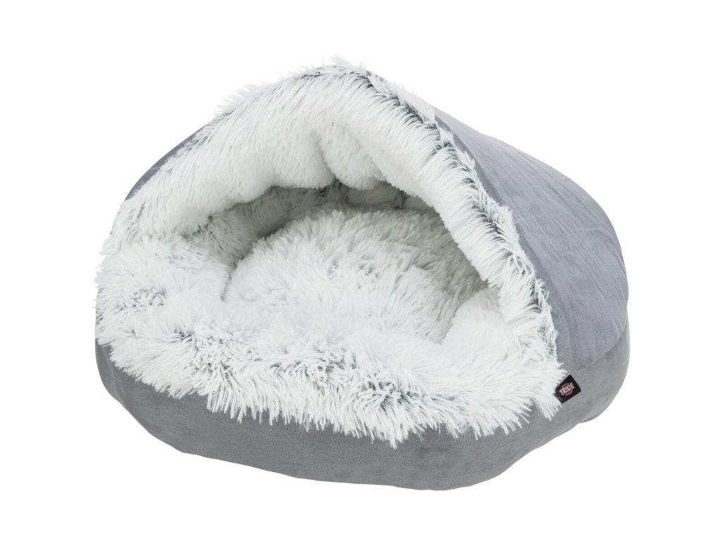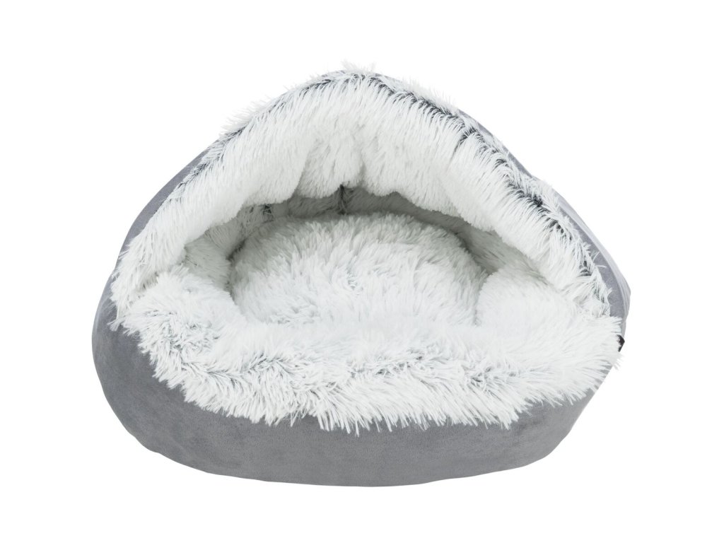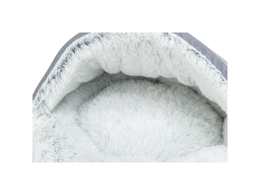 HARVEY plyšová jeskyně s hebkým vlasem, šedá/bílo-černá (ø 70 cm)