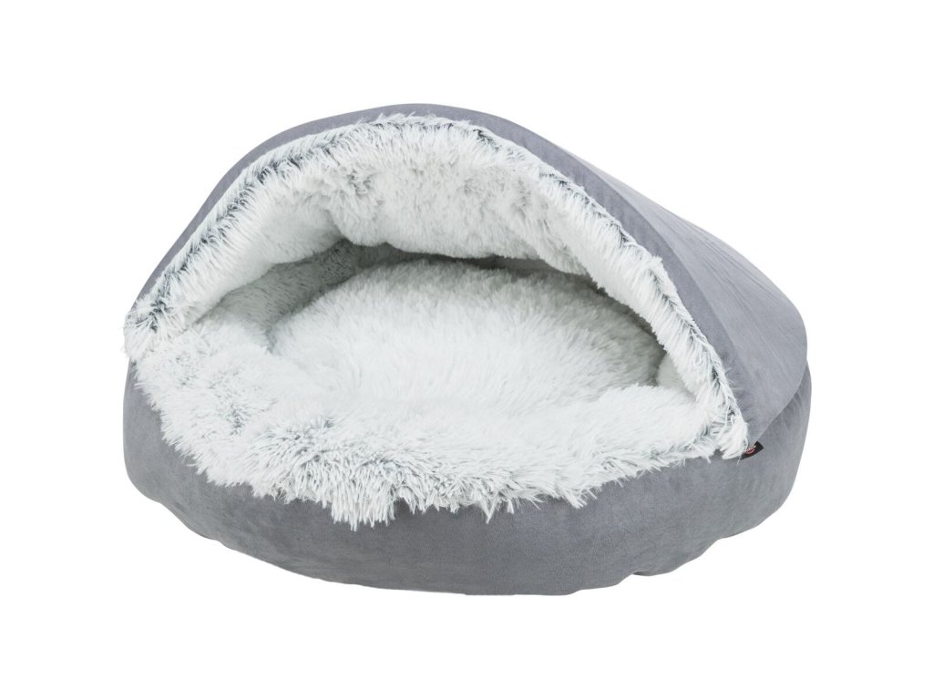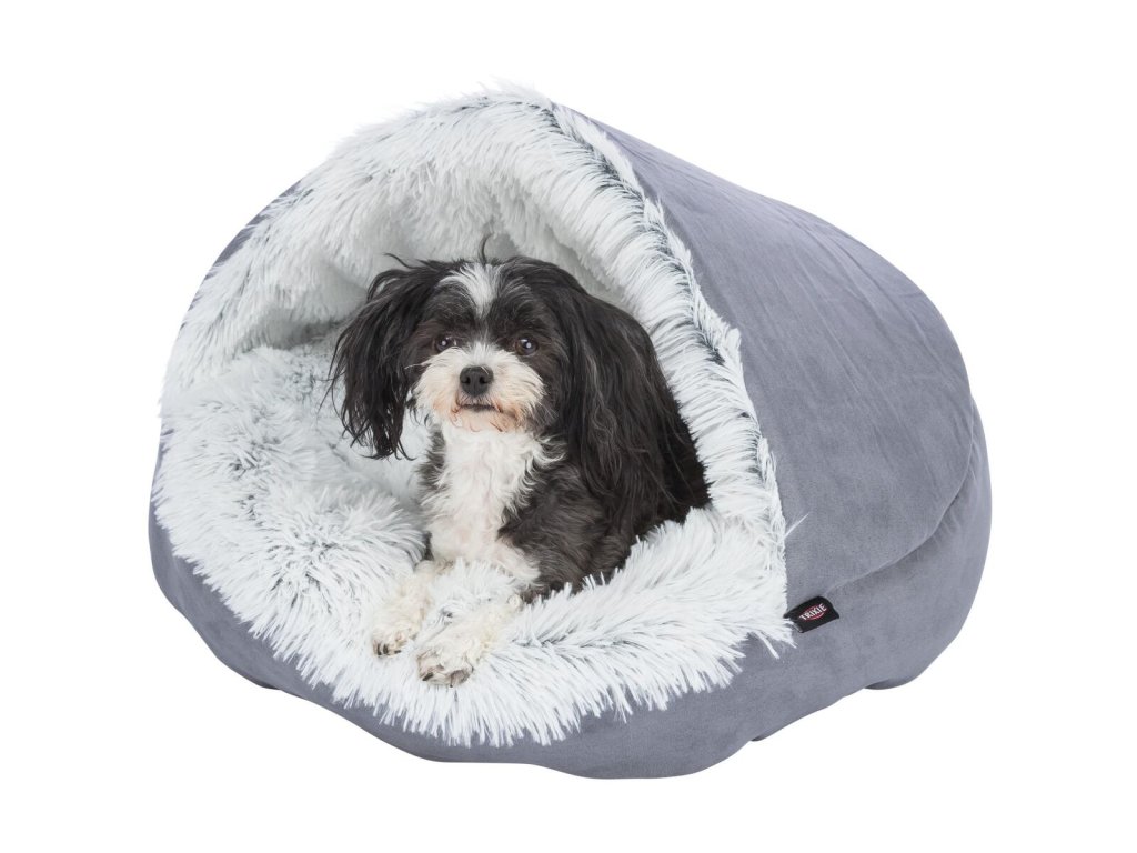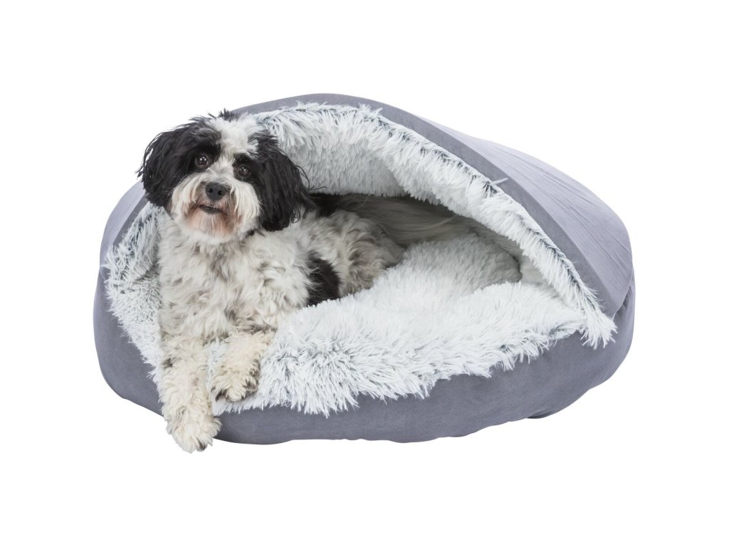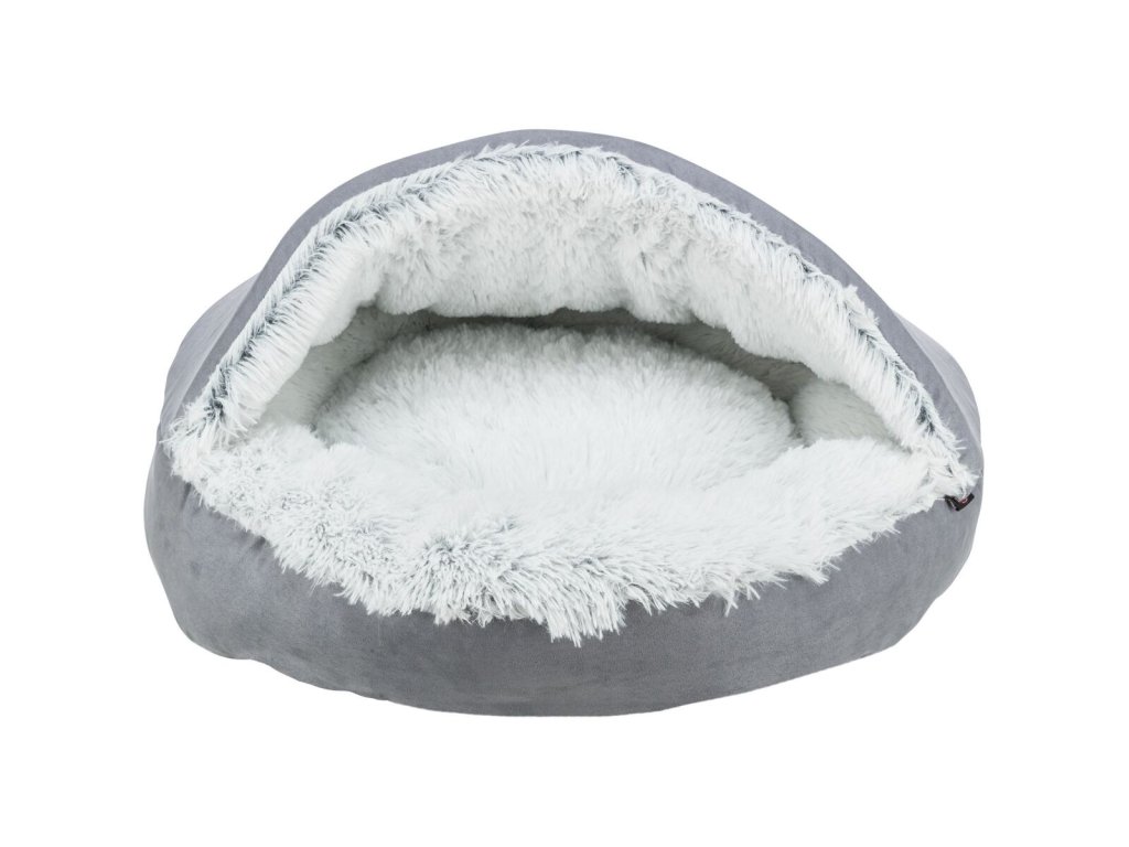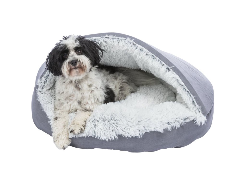 HARVEY plyšová jeskyně s hebkým vlasem, šedá/bílo-černá (ø 70 cm)