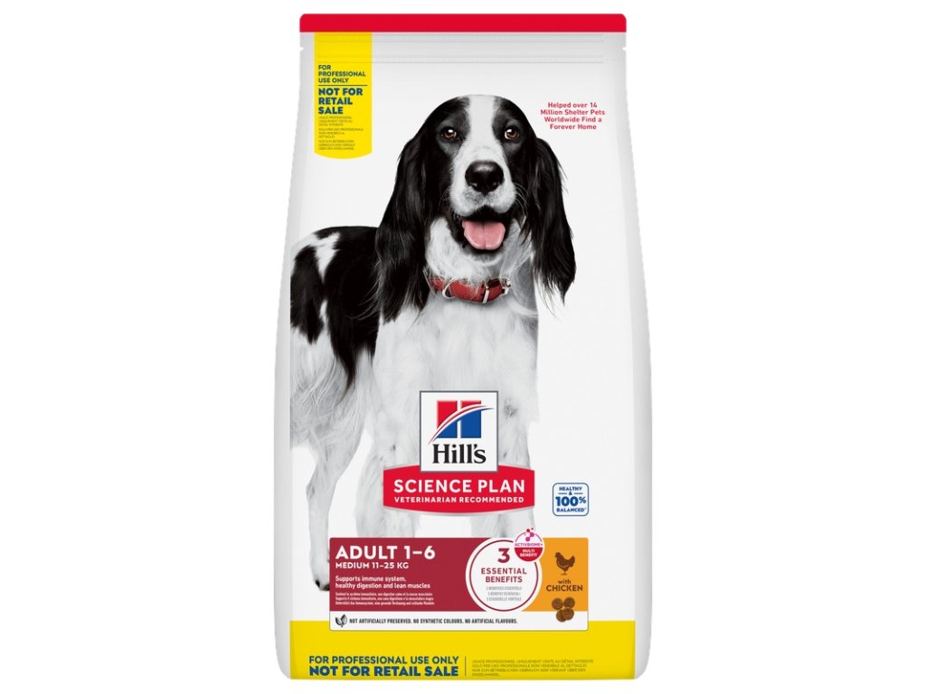 Hill's Science Plan Adult Medium je krmivo s kuřetem pro dospělé psy středně velkých plemen a představuje lahodnou, zdravou a vyváženou stravu, která vyživuje psa v nejlepším období jeho života. Granule obsahují omega-6 mastné kyseliny a vitamín E podporující zdraví kůže a lesk srsti. Vysoce kvalitní bílkoviny podporují tvorbu svalové hmoty a snadno stravitelná vláknina stimuluje trávení. Patentovaná směs prebiotik ActivBiome+ Multi-Benefit vyživuje střevní mikrobiom, čímž podporuje funkce zažívacího traktu i celkovou pohodu psa.