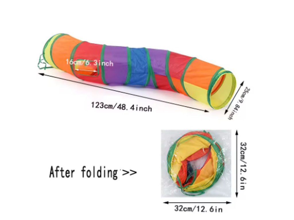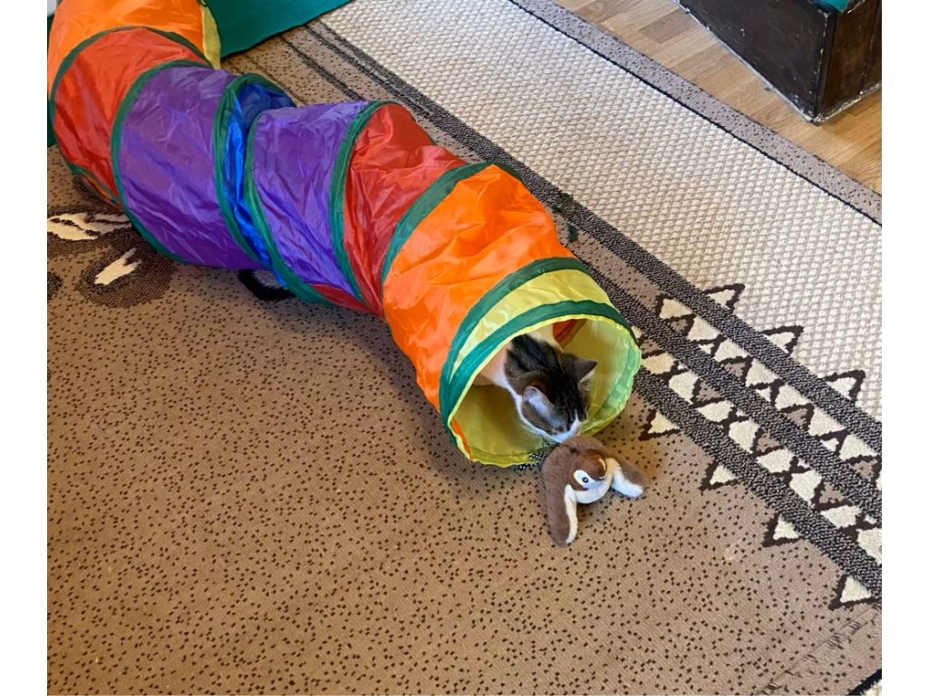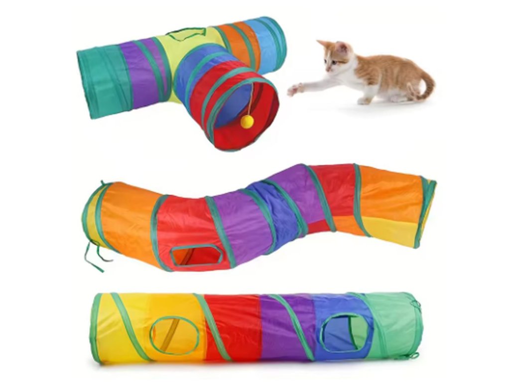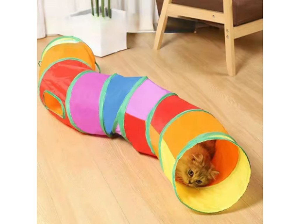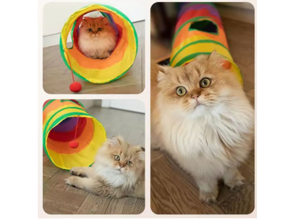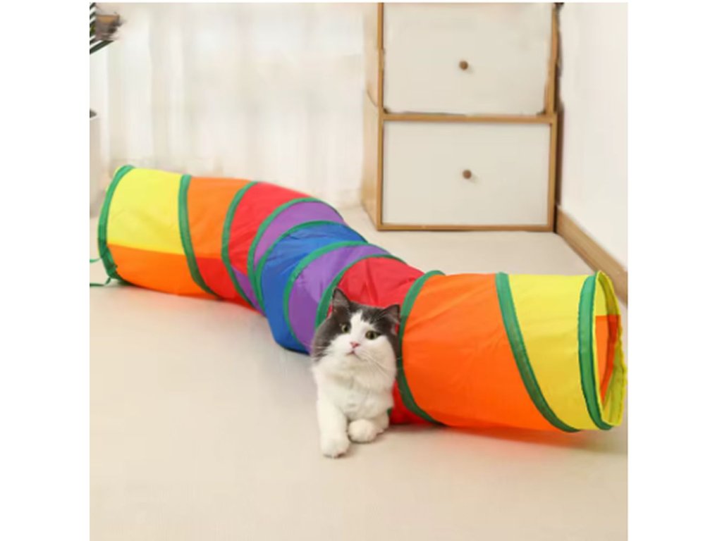 Hrací tunel, ve kterým si vaše kočička užije spousty zábavy. V tunelu se může schovávat, prolézat nebo otvorem proskakovat dovnitř i ven. Tunel je skládací, přenosný a vyroben z odolných materiálů, které odolají i temperamentnějšímu zacházení. Vybírat můžete ze dvou variant - tunel ve tvaru "S" nebo ve tvaru "T".