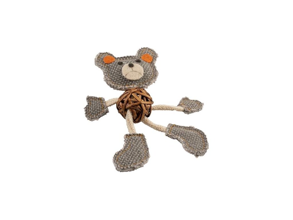 Odolná a robustní plátěná hračka ve tvaru medvěda je vyrobena z pevného plátna. Má hrubší švy a uprostřed malý vrbový míček. Obsahuje catnip (šantu kočičí), který podporuje instinktivní lov a vybízí ke hře a pohybu. Catnip je přírodní, nenávyková bylina, jejíž vůně přitahuje až 70 % koček.