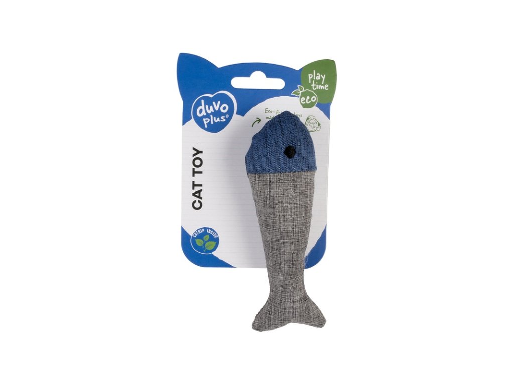 Ekologická hračka ve tvaru ryby, s náplní z catnipu, uspokojuje přirozený lovecký instinkt kočky a motivuje ji k aktivní hře. 50 % látky a 100 % výplně je vyrobeno z recyklovaných plastových lahví. Catnip (šanta kočičí) je přírodní, nenávyková bylina, jejíž vůně přitahuje až 70 % koček.