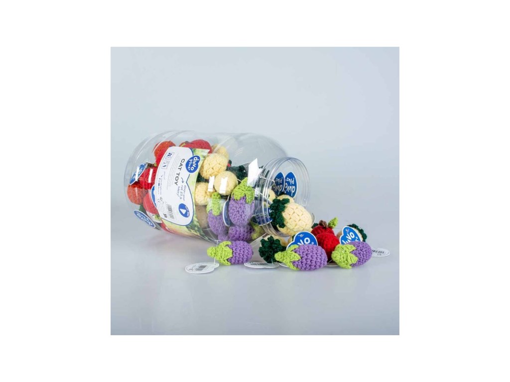 Malá hračka ve tvaru ovoce upletená z měkké vlny je ideálním náčiním pro každodenní hru. Díky své velikosti a lehkému materiálu je snadno polapitelná a vhodná pro lov i zápasení. Hračka podporuje přirozený lovecký instinkt kočky, motivuje ji k pohybu a pomáhá ji udržovat ve fyzické i mentální kondici.
