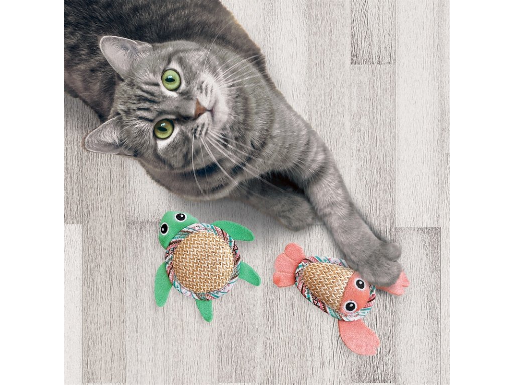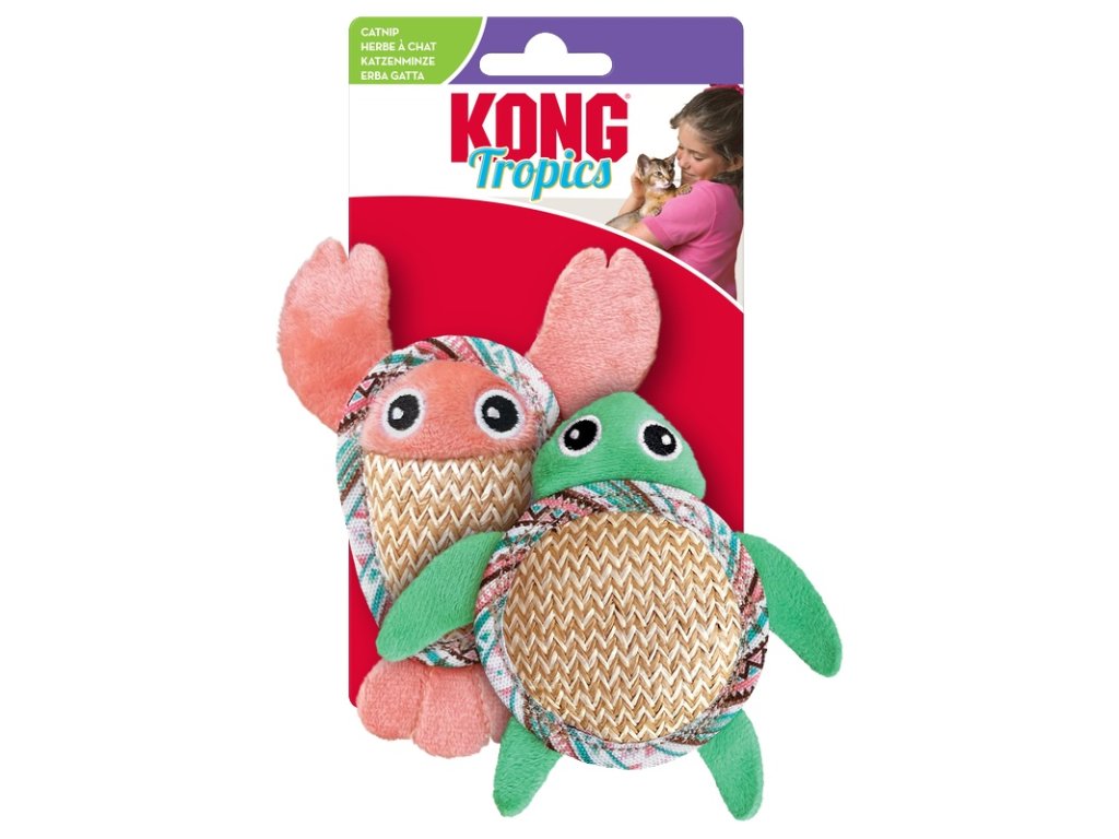 Hračky KONG Tropics Pals připlouvají z tropů rovnou do kočičích tlapek, aby jim přinesly spoustu zábavy! Krunýře z hrubé tvídové tkaniny jsou ideální na škrábání a kousání, zatímco plandavé končetiny z měkkého plyše vybízejí k mazlení a olizování. Uvnitř želvy i raka se skrývá prémiová šanta kočičí (catnip) a šustivý materiál, jehož zvuk podněcuje lovecké instinkty. Díky kombinaci různých textur a vůní poskytují tyto mořské postavičky kočkám smyslově bohatý zážitek a dlouhodobou zábavu.