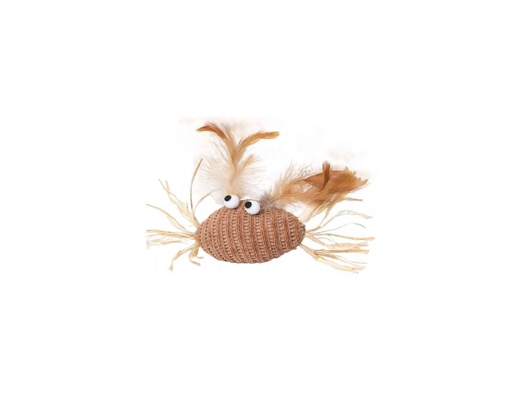 Hračka ve tvaru kraba je vyrobená z měkkého úpletu, který doplňují peříčka a sláma. Různorodé textury a přírodní materiály stimulují přirozené lovecké instinkty kočky a podněcují ji k aktivní hře. Hračka je vhodná pro kočky všech věkových kategorií.