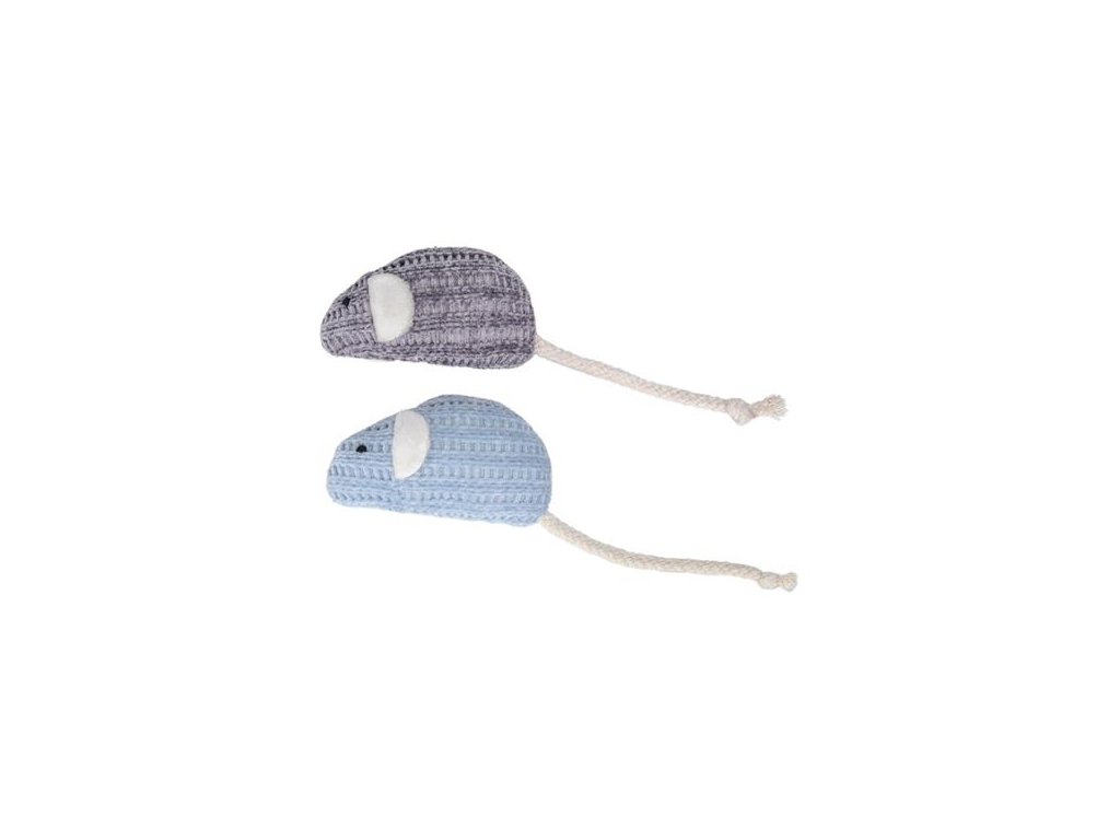Dvě hračky ve tvaru myšek jsou vyrobené z měkkého úpletu, mají plyšovou výplň a pro ještě větší vzrušení ze hry dlouhý ocásek z provázku. Použité materiály stimulují přirozené lovecké instinkty kočky. Hračky jsou vhodné pro samostatnou i společnou, interaktivní hru.