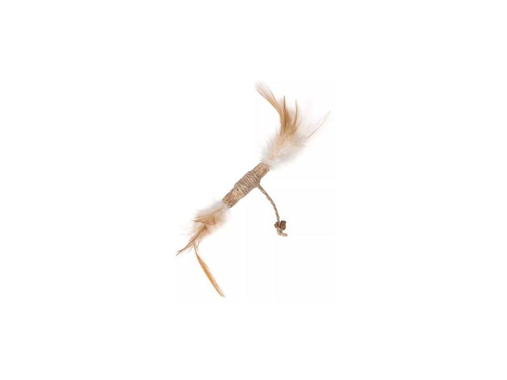 Hračka ve tvaru válečku je vyrobená ze dřeva a provázku a na obou koncích ozdobená peříčky. Použité materiály podporují aktivní hru a stimulují přirozené lovecké instinkty kočky. Jejich okusování navíc pomáhá odstraňovat zubní plak a podporuje tak zdraví ústní dutiny. Hračka je vhodná pro kočky všech věkových kategorií.