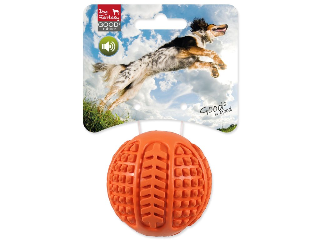 Hračka Dog Fantasy míček guma pískací oranžová 6,3 cm