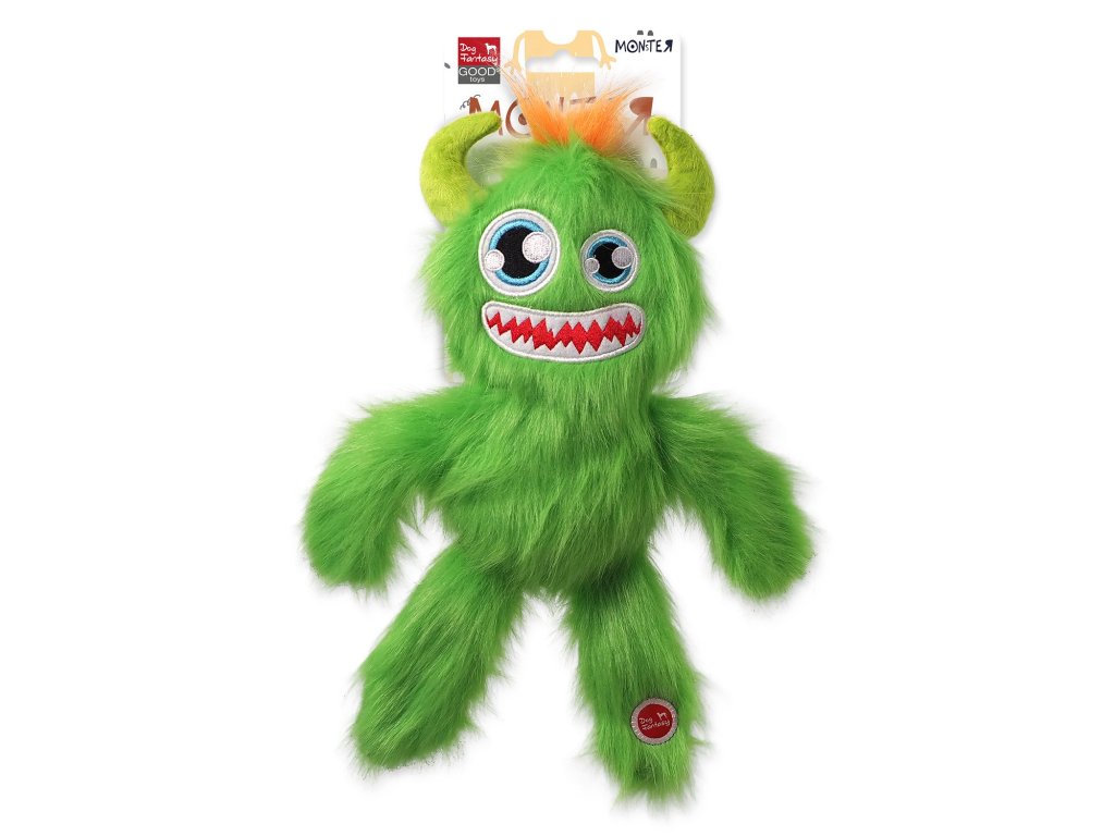 Hračka Dog Fantasy Monsters strašidlo pískací chlupaté zelené 35 cm