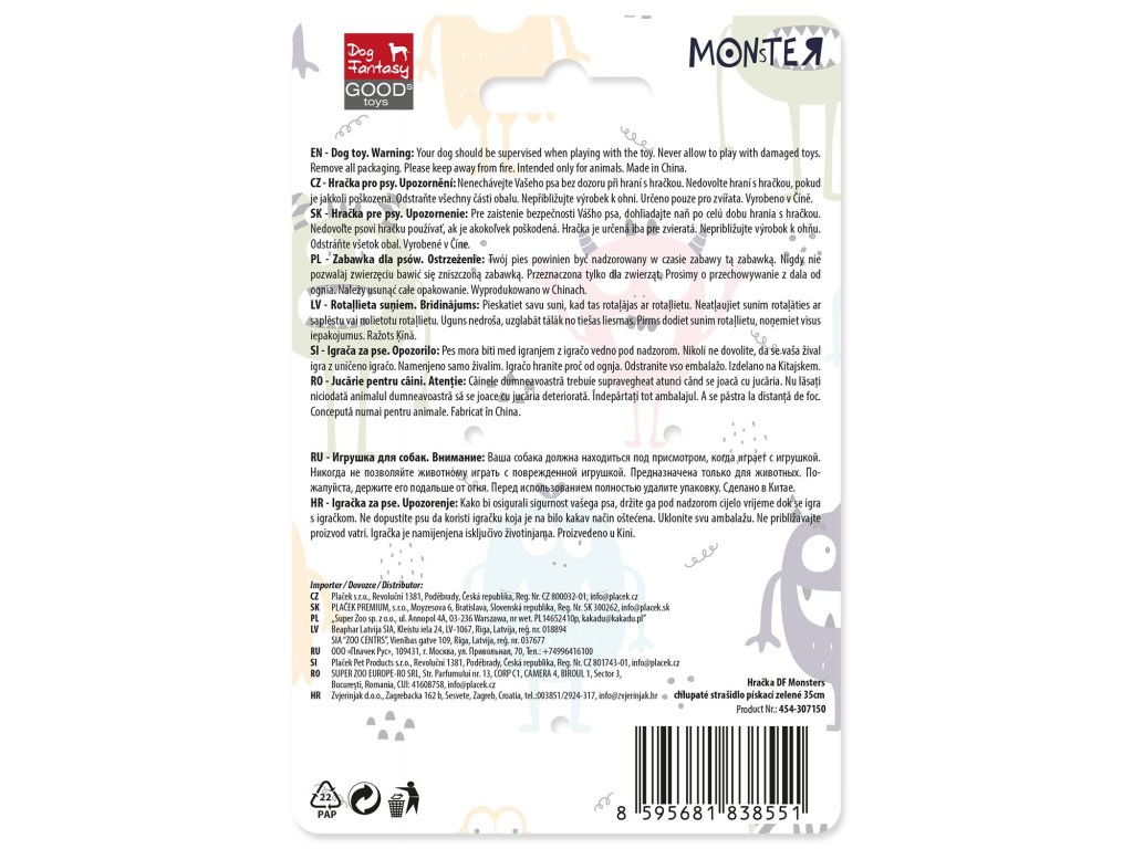 Nenechávejte Vašeho psa bez dozoru při hraní s hračkou. Nedovolte hraní s hračkou, pokud je jakkoli poškozena.Odstraňte všechny části obalu. Nepřibližujte výrobek k ohni. Určeno pouze pro zvířata.