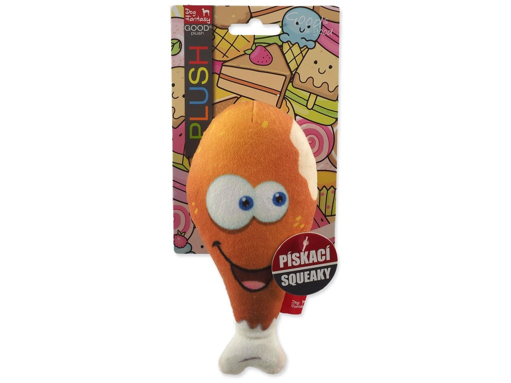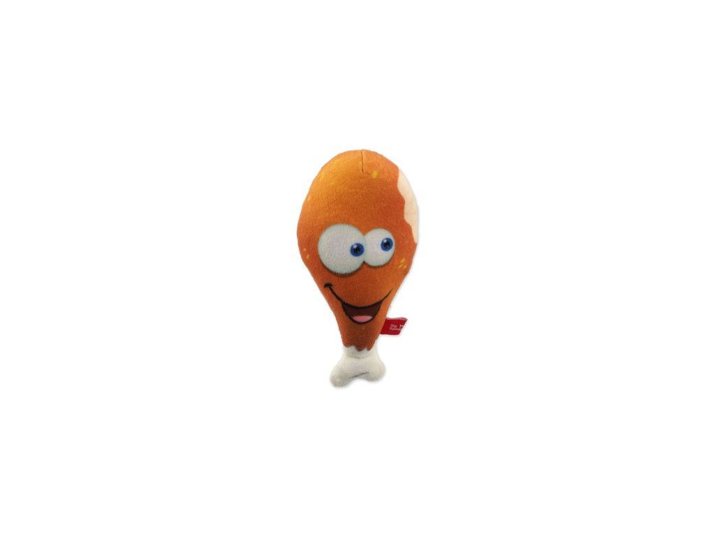 Vtipná plyšová hračka ve tvaru stehýnka. Při stlačení hračka píská.