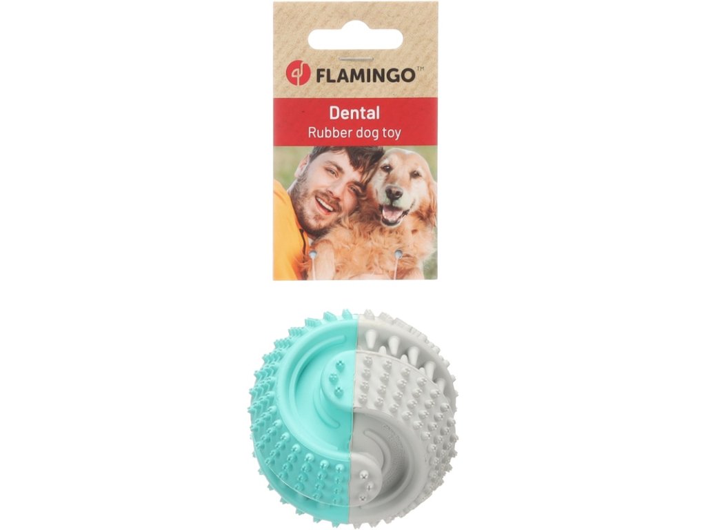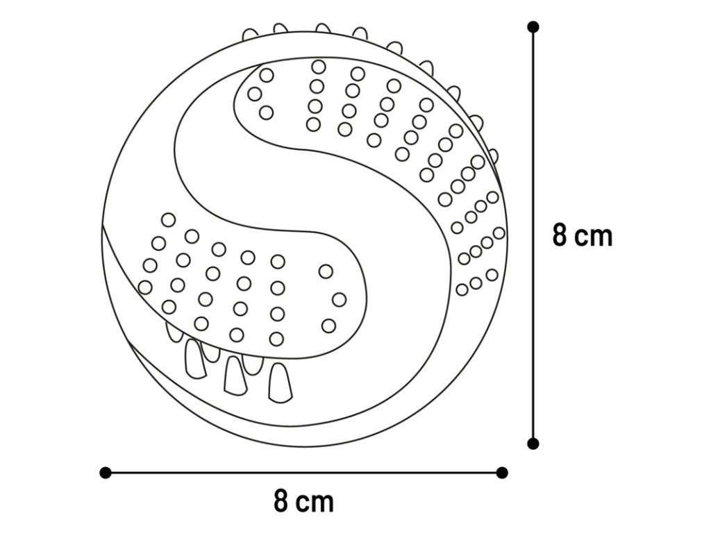 Gumová hračka pro psy ve tvaru míčku je vhodná ke kousání i aportování. Při kousání masíruje dásně a pomáhá omezovat tvorbu zubního plaku, čímž přispívá k přirozené péči o chrup. Prohlubně v hračce lze naplnit drobnými pamlsky nebo jedlou pastou a zvýšit tak motivaci ke hře.